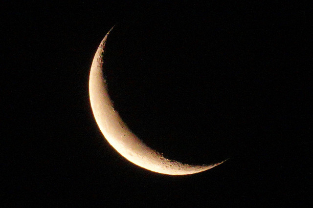 頭上に、すっかり細くなった月。