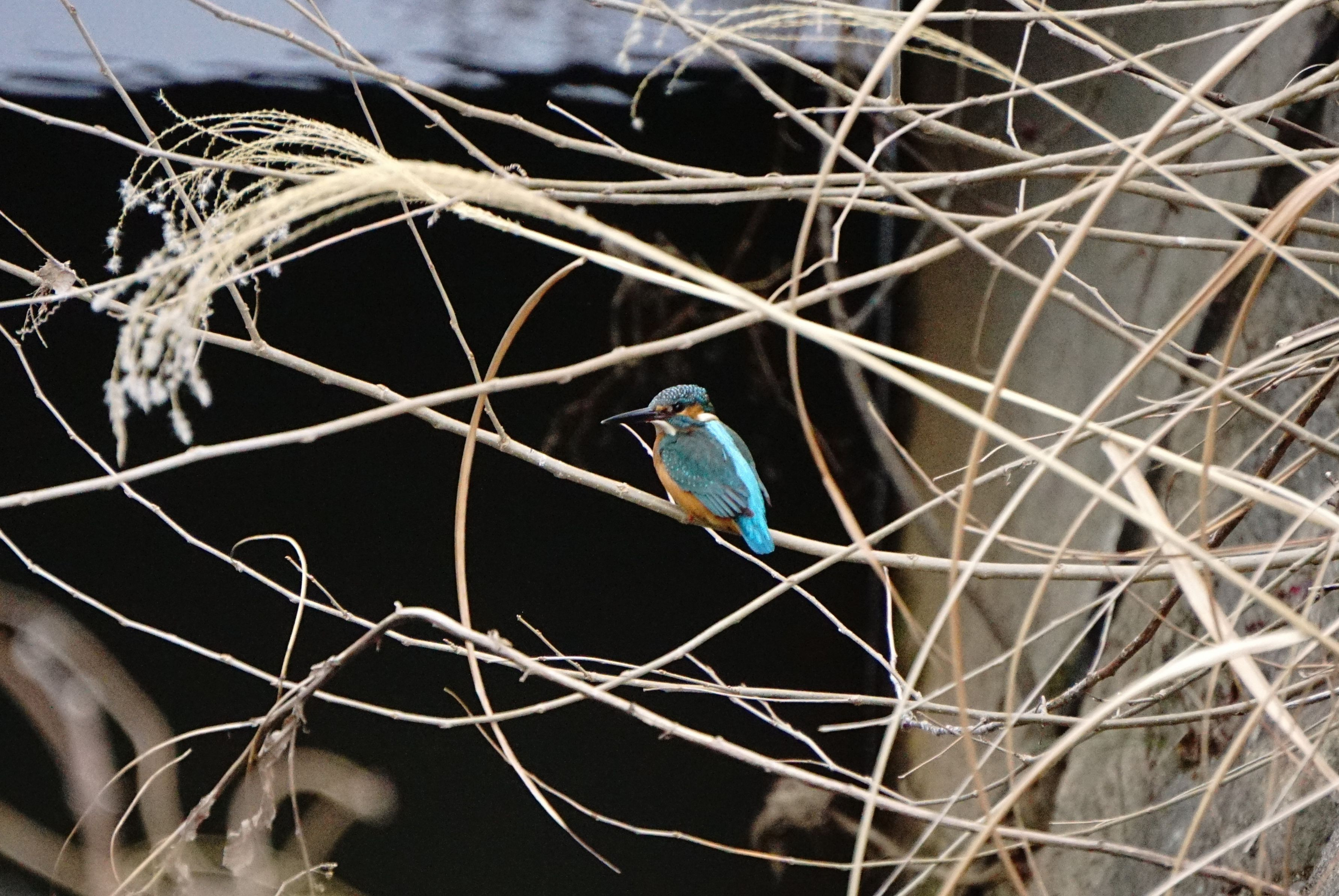 冬の川辺で出会った青