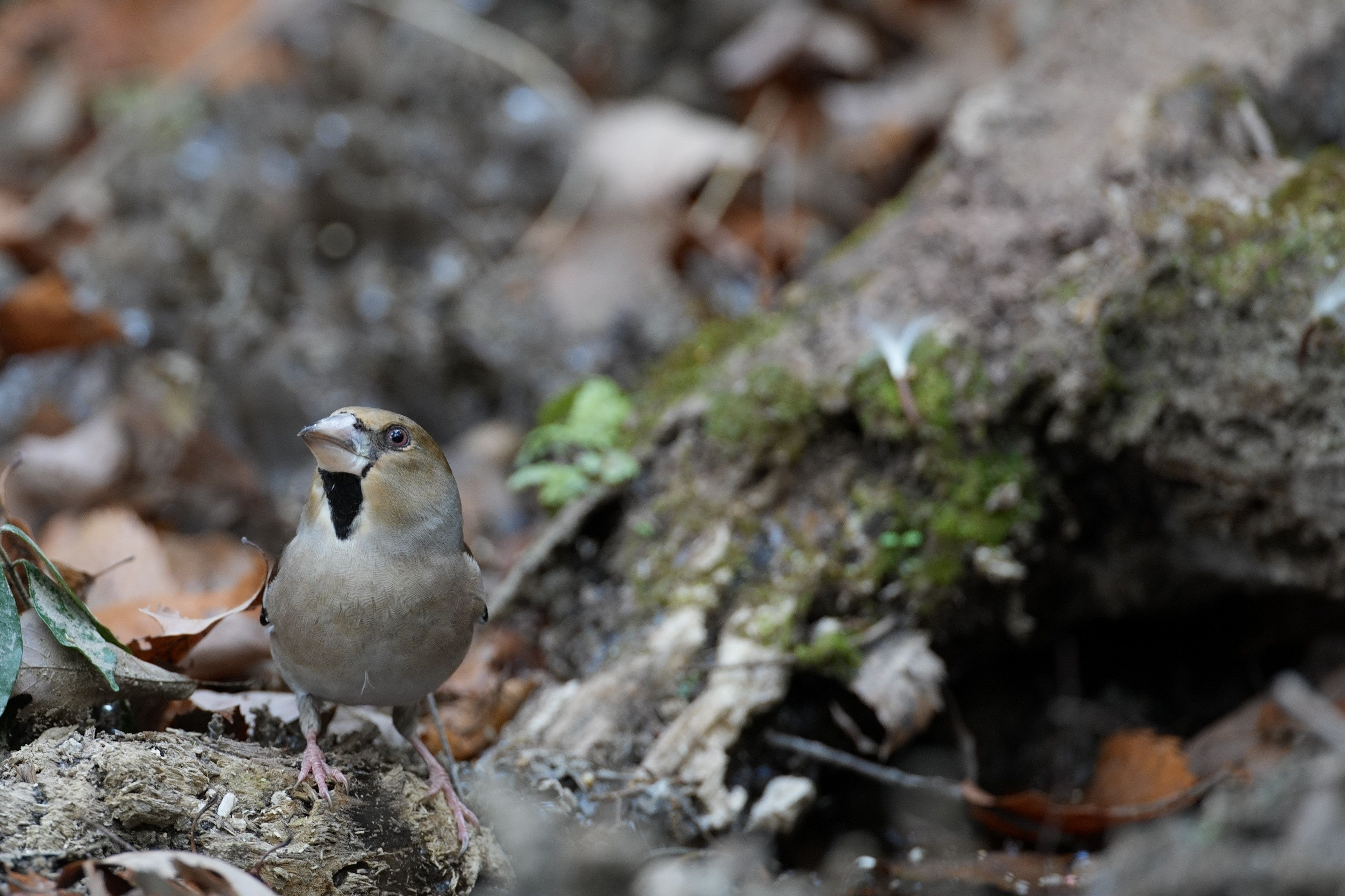 今年一番の寒気が来た日、昼になっても霜柱はがちがち、何が来るかと待っていたらシメでした。近いのでレンズは動かせません、シメの警戒が収まるのを待ちます、手袋とった指先はぶるぶるしびれますが我慢のしどころです。~水飲んだだけでした~~。