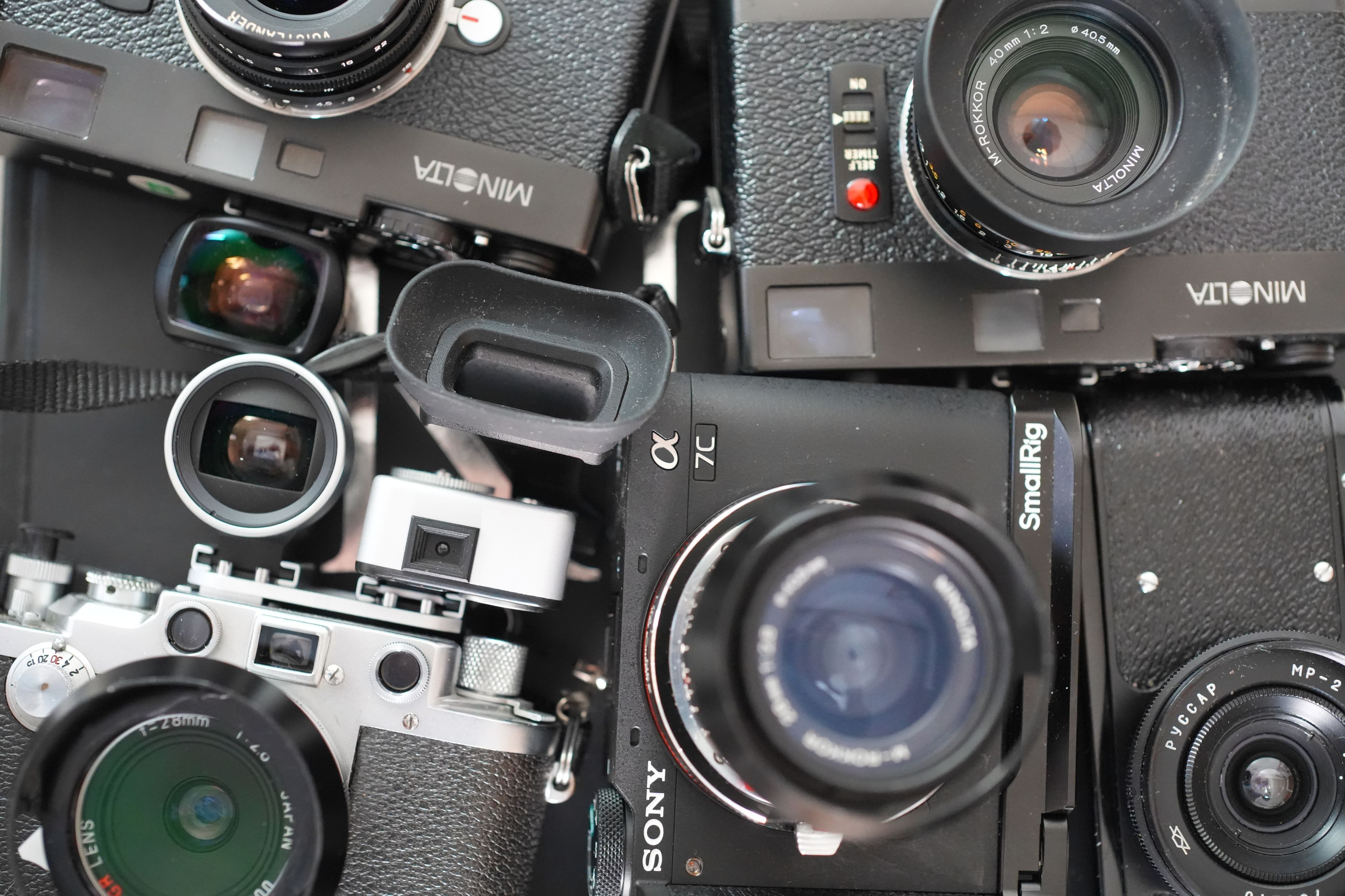 ファインダーに迷いのない新型minoltaCLEとして扱ってますw。PEN-FTも要らない、と思えます。ルサール20mmは奥が深く入り込むので装着禁止です。シンCLEの他にシンOM5の役割も持っており、銀塩OMマクロレンズはきっちり使います。