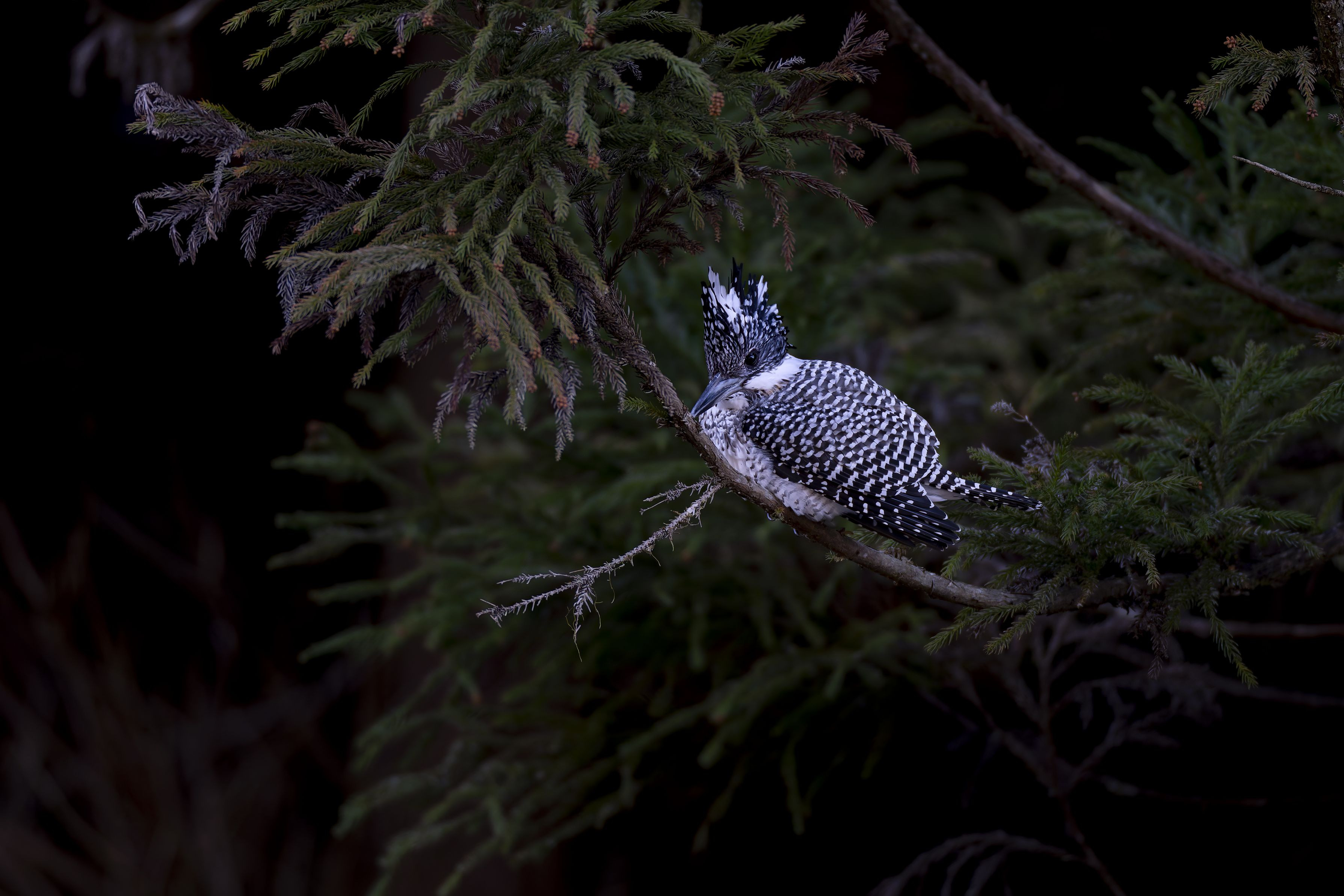 暗い渓谷の中ヤマセミが現れてくれました