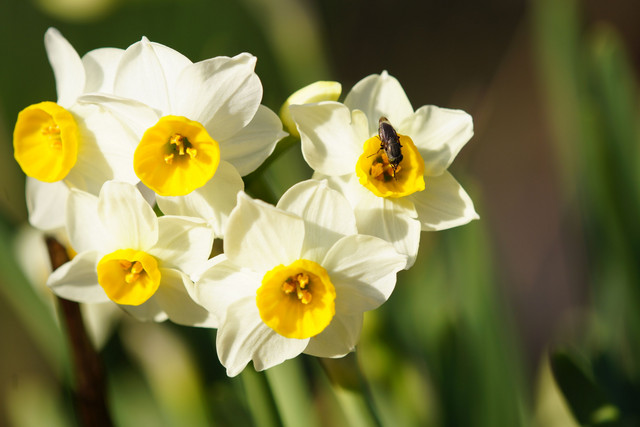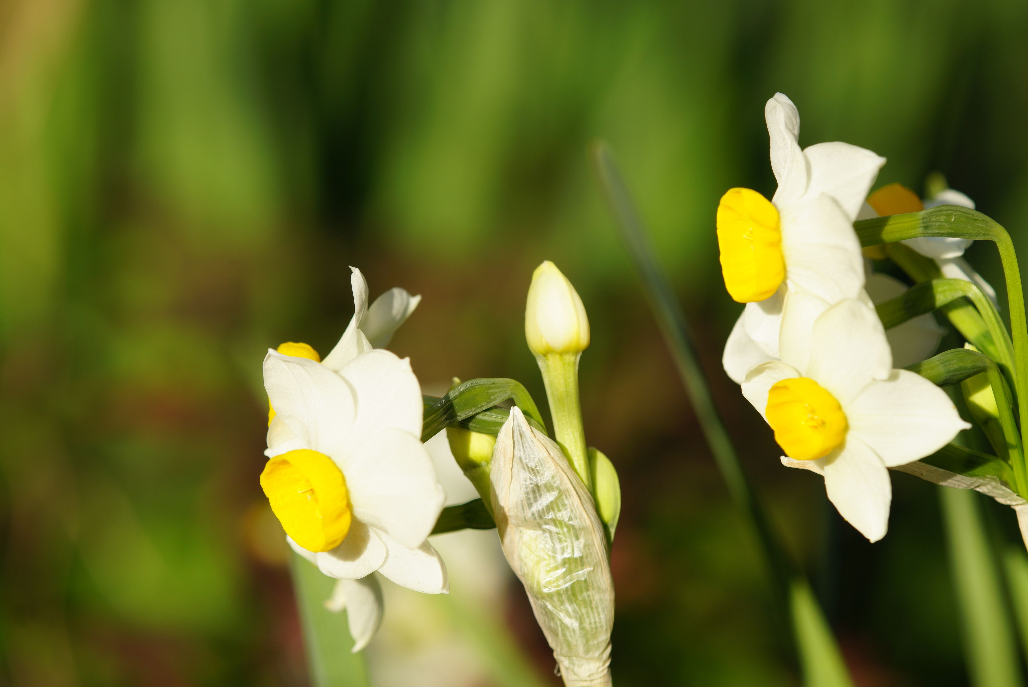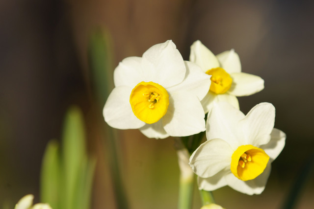 神社の参道で開花を迎えた水仙。