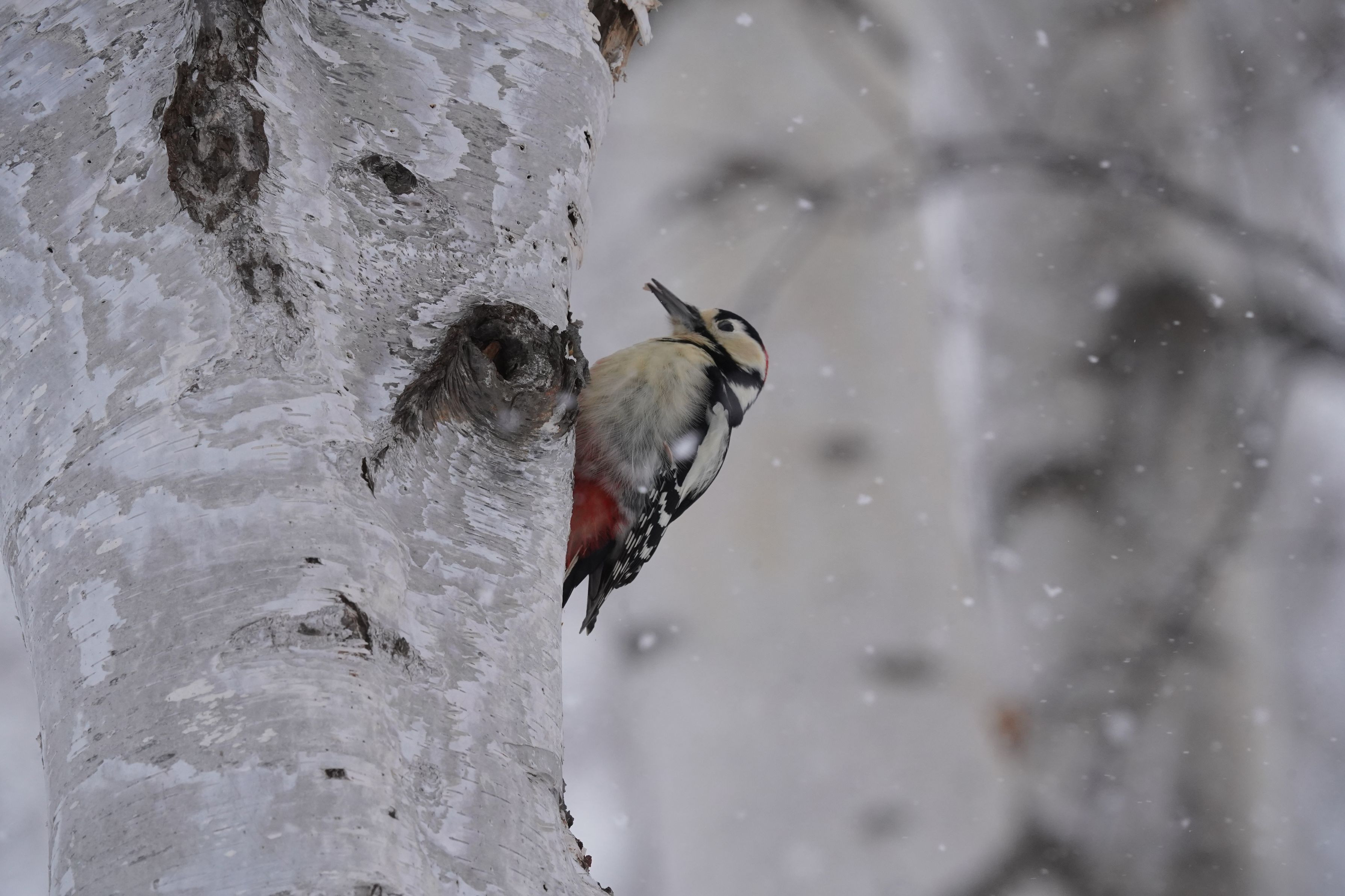 製品情報>My Sony>αcafe>雪のちらつく中 アカゲラ(ガルガワさん)