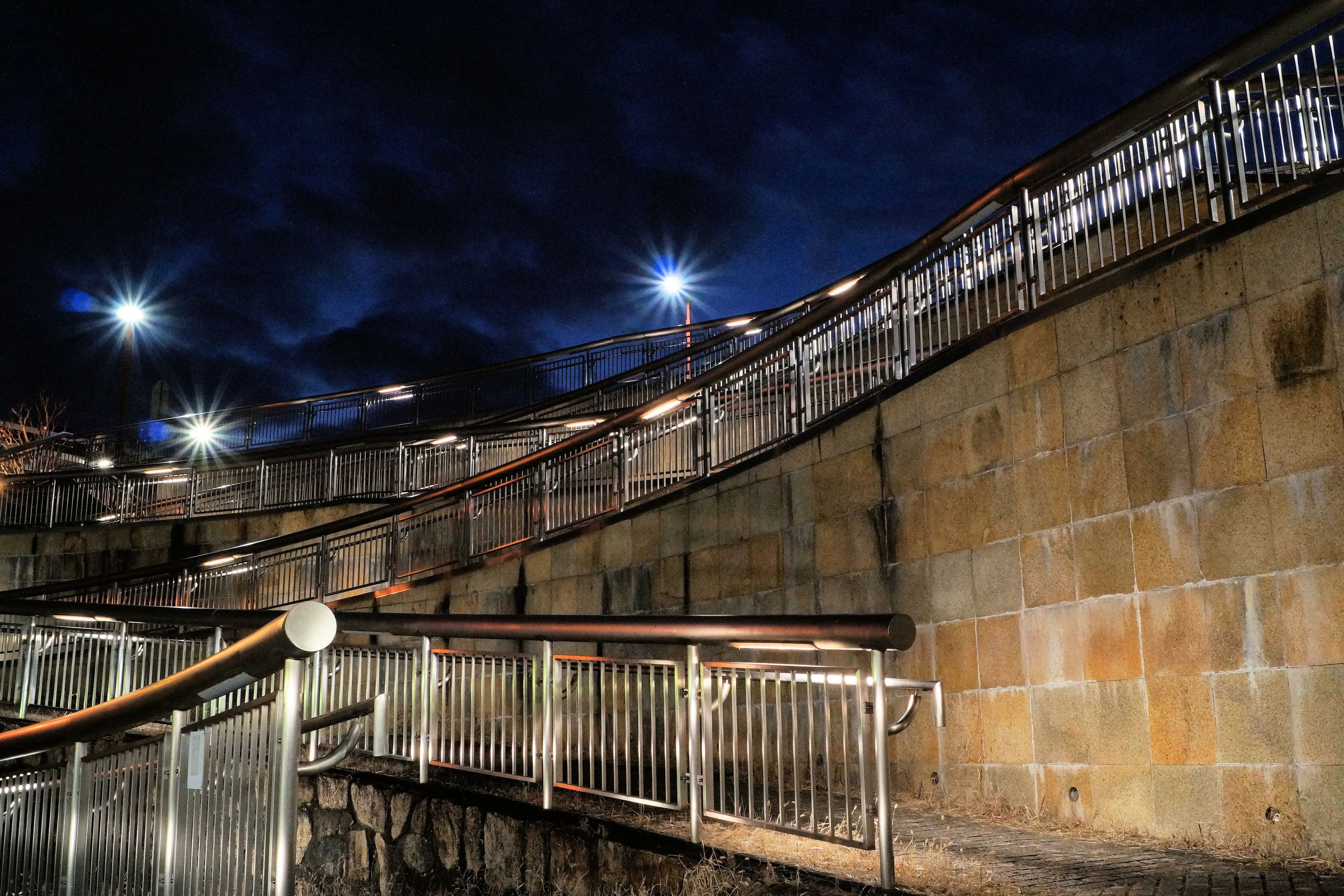 駅前のスロープに設置されているハンドレール。 ステンレス製でよく光っていました。