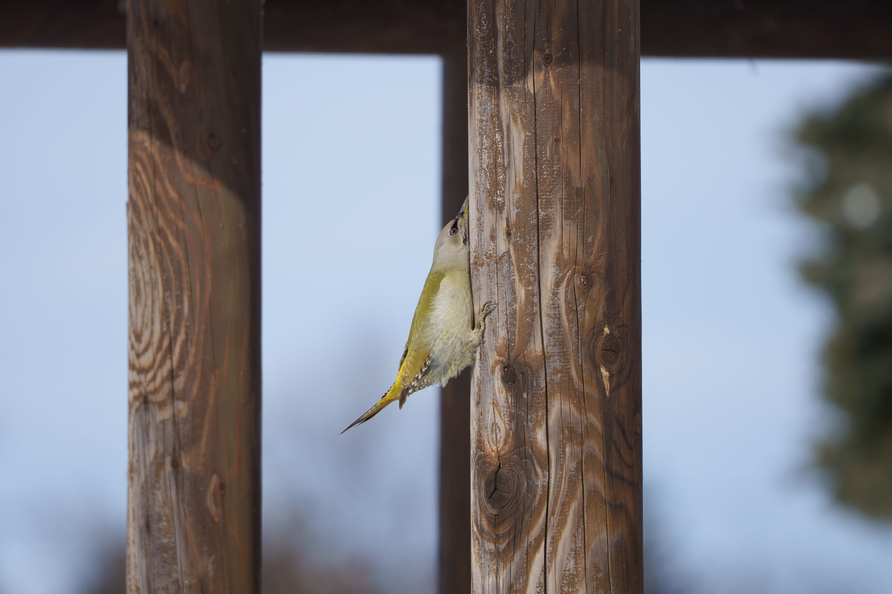 大きな公園の東屋の柱に、蝉のようにピタッとくっついているヤマゲラさんに出逢いました。 なかなかこの場所から逃げずに、ずっと柱を行ったり来たりしていました。 太陽の光が柱に当たっていたから、日向ぼっこをしていたのかもしれません。