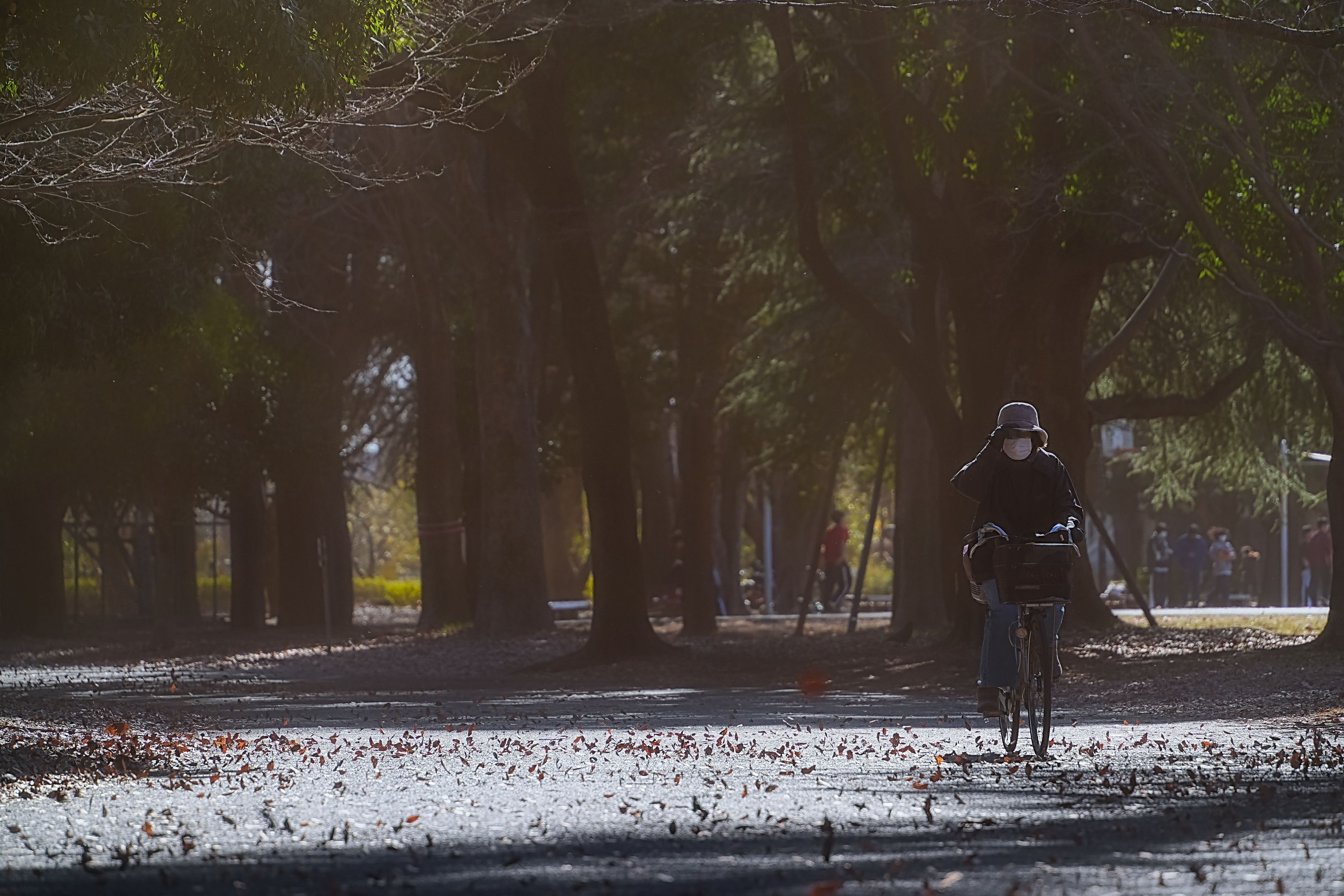 強い北風、枯葉が地面で躍る季節(*_*;
