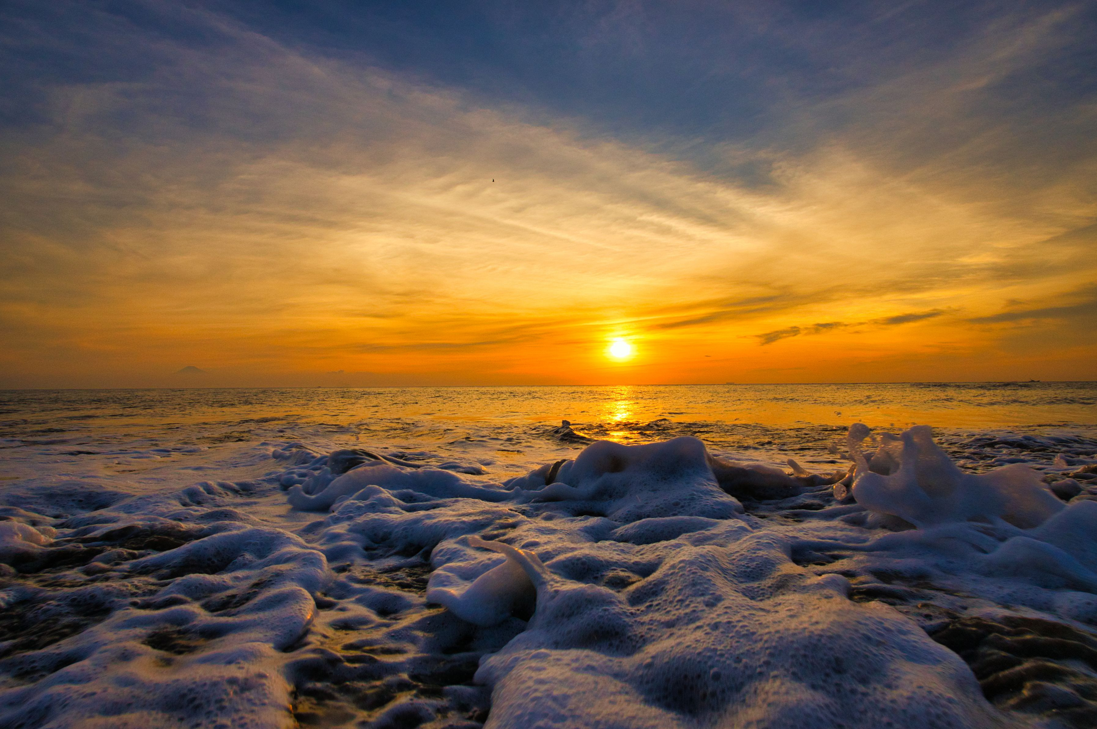 砂浜が輝く冬の朝