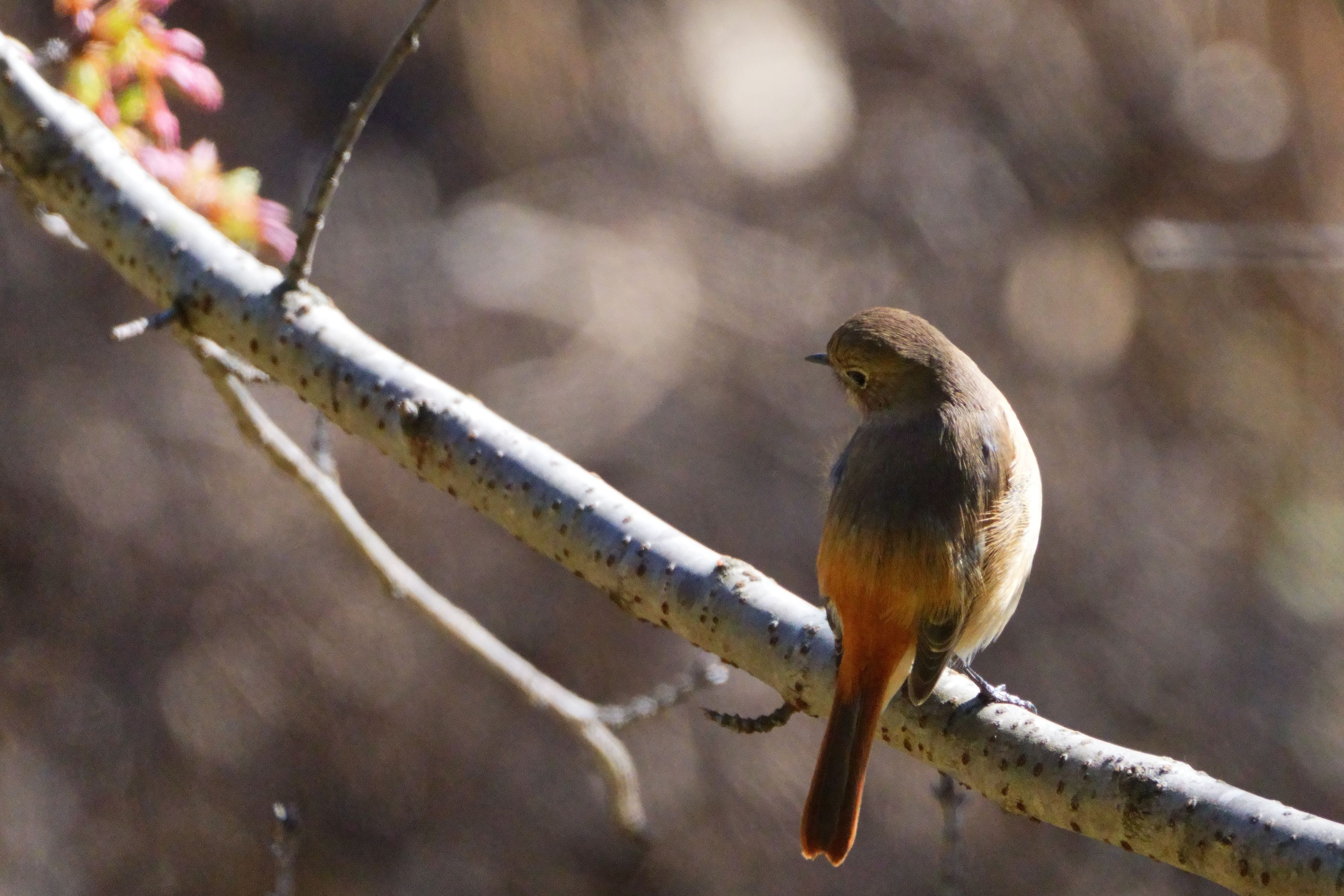 日に日に強さを増す日差しの中、 春を待ちきれない河津桜のつぼみが膨らみ始めた。 風は冷たくても春は確かに近づいてきている。 ね、ジョウビタキさん。