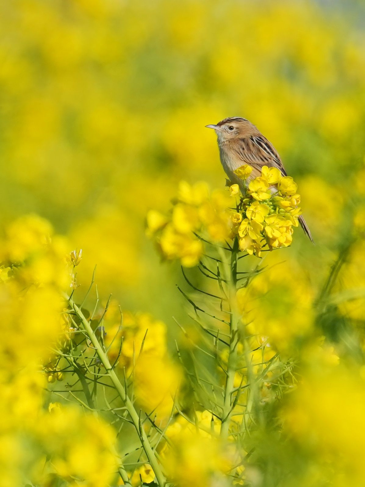 2026年1月 地元の菜の花畑✨ 待つこと数十分セッカが菜の花に乗ってくれました。 まだまだ咲いていると思うのでまた行きたいと思います♪ #セッカ#