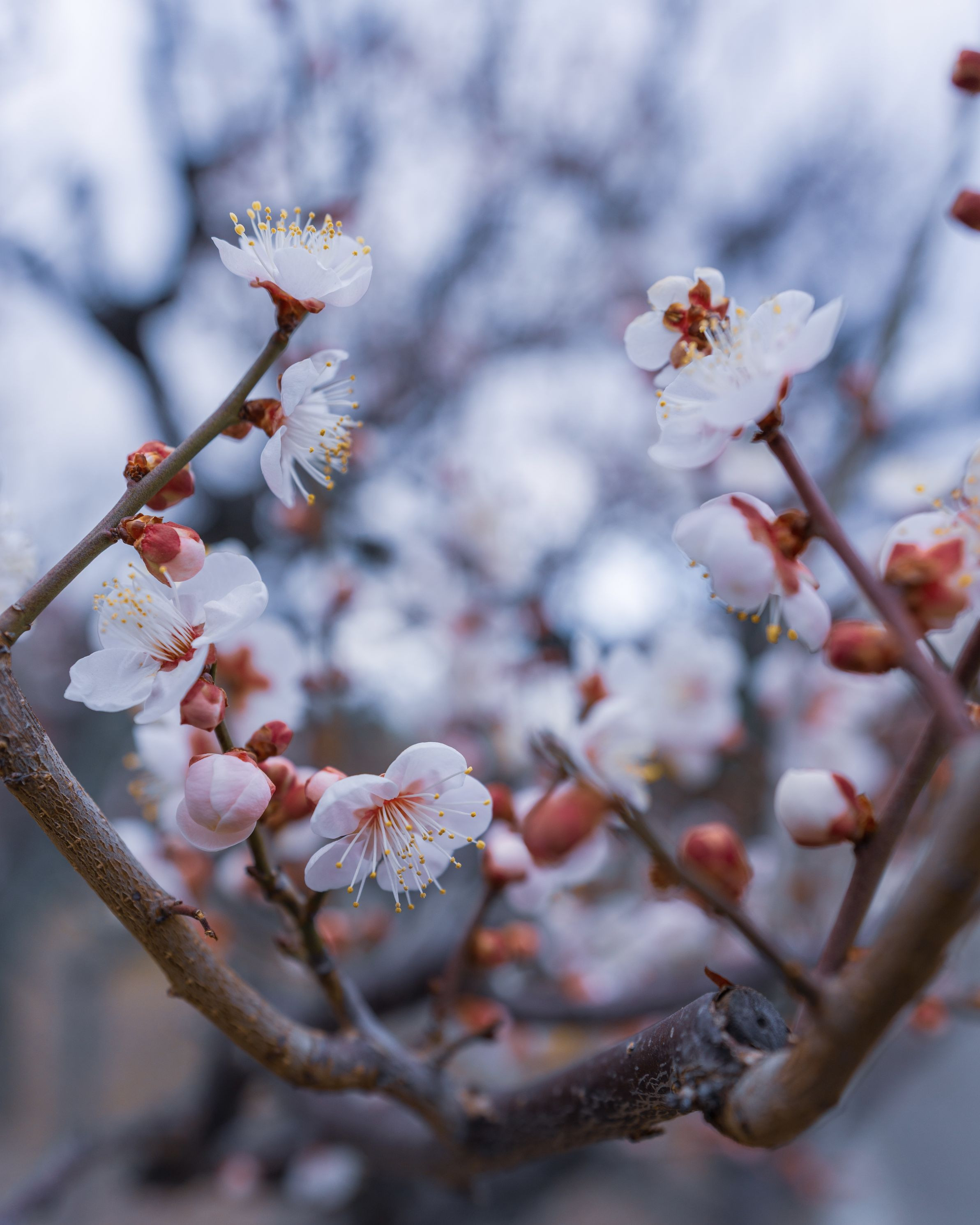 蝋梅の撮影を目的に大阪城公園梅林へ。 かなり寒い日でしたが、早咲きの梅も少し咲いていたので撮影しました。