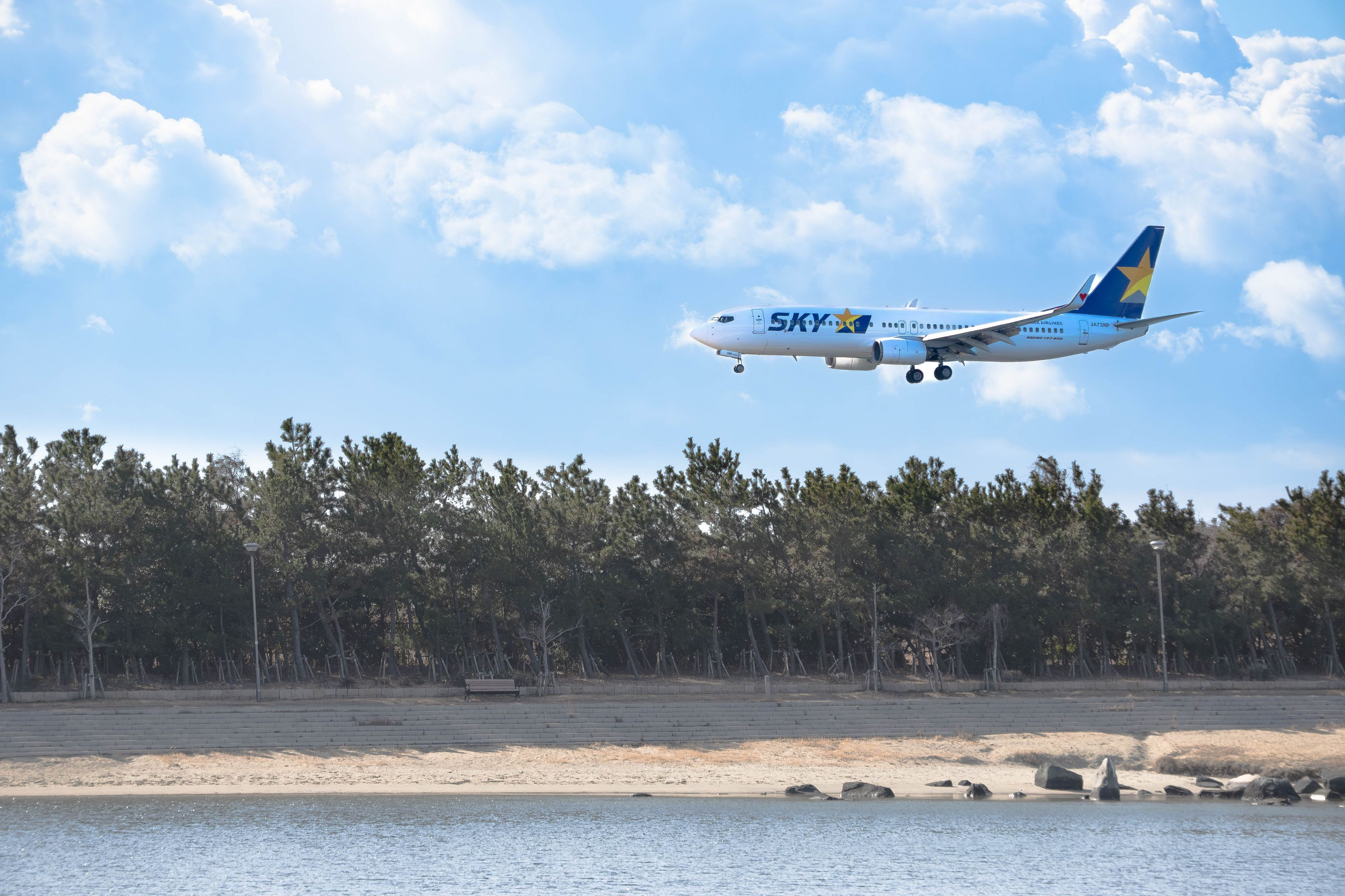 神戸空港に着陸体制のスカイマーク