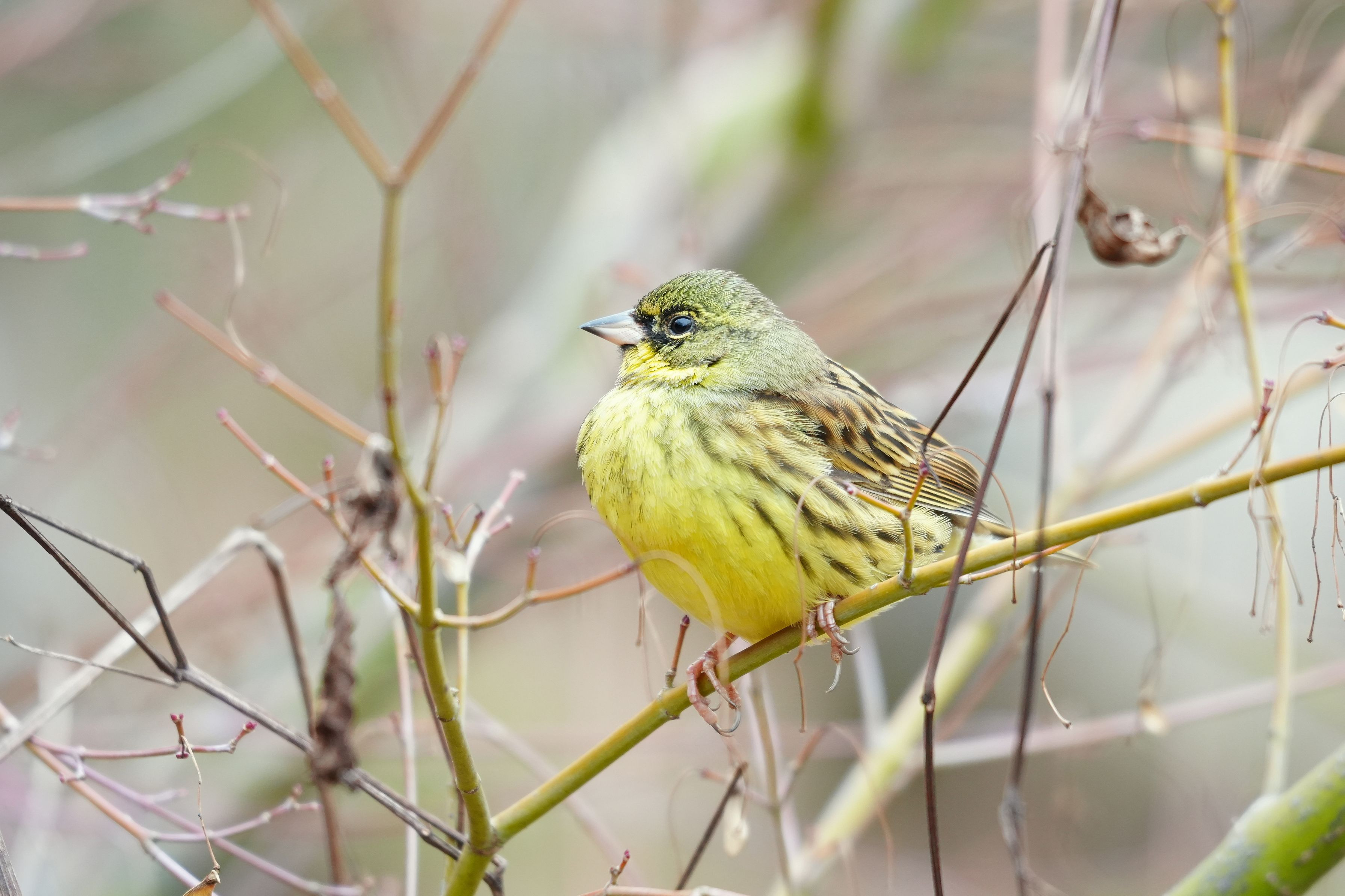 寒い日の丸るくなったアオジさん