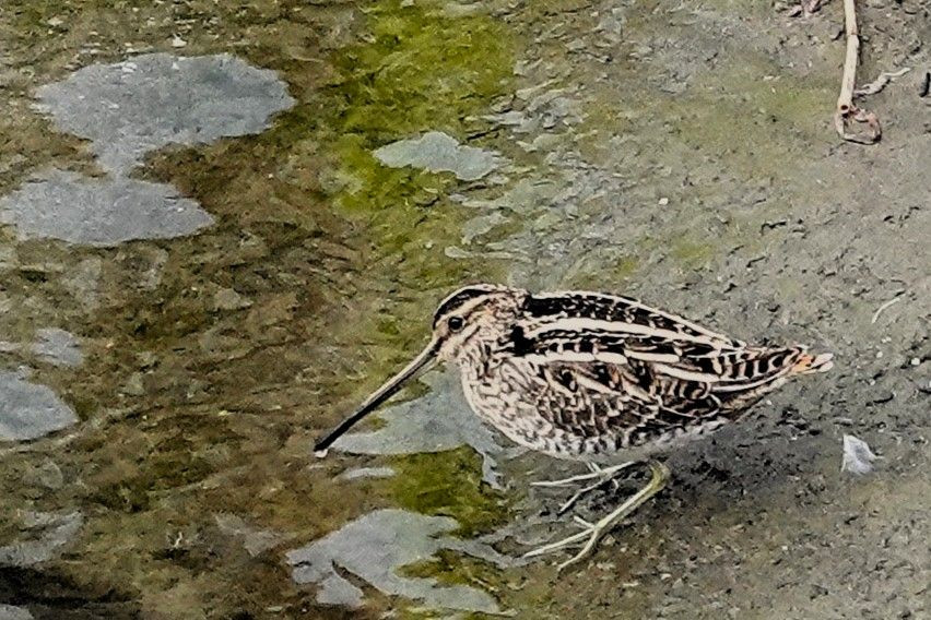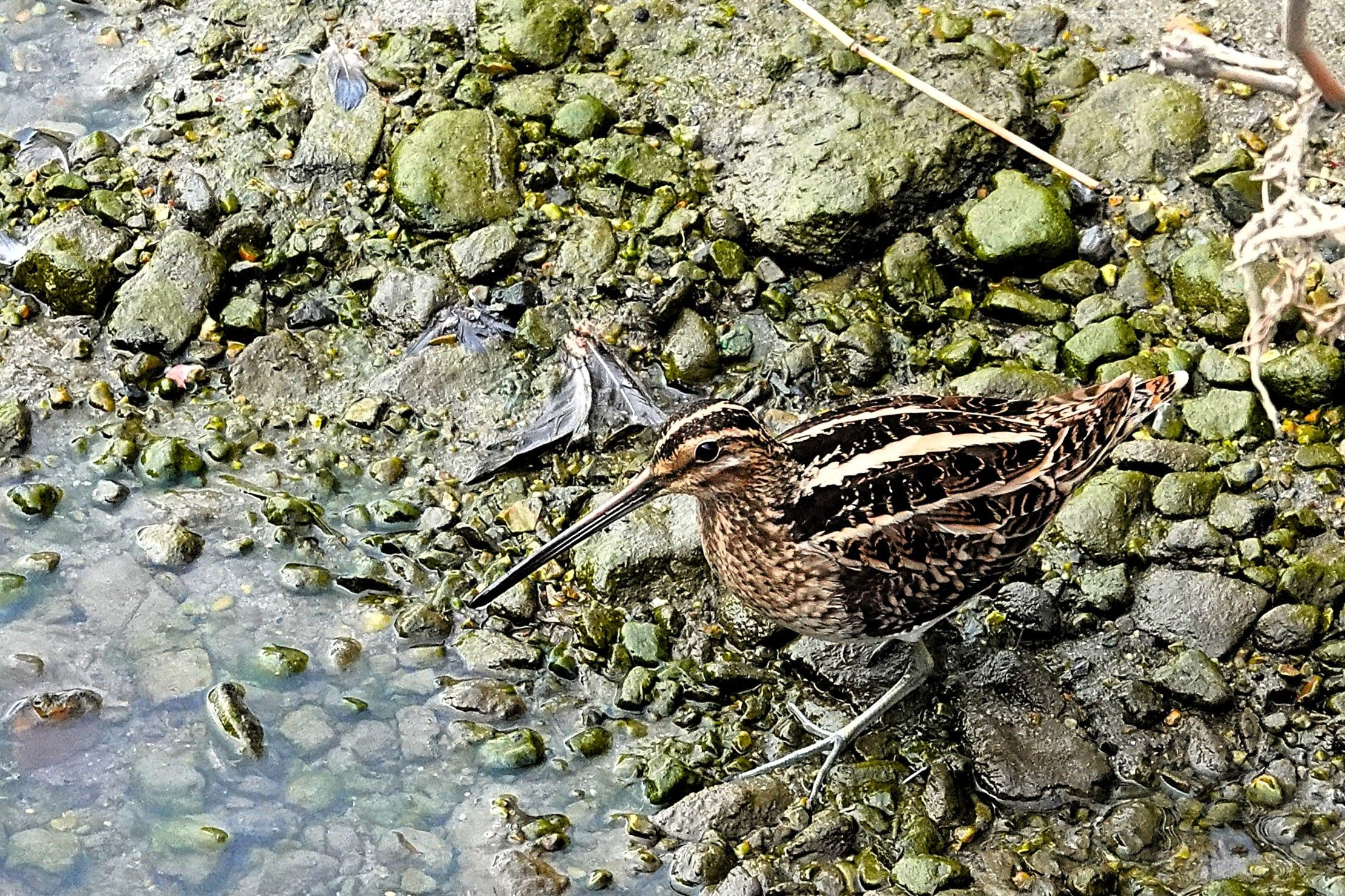 山崎川でタシギが現れたとの情報を得て出かけました。 なかなか出てこないとの事でしたが、運良く直ぐに現れてくれました。 私1人で静かにしていたからでしょう。
