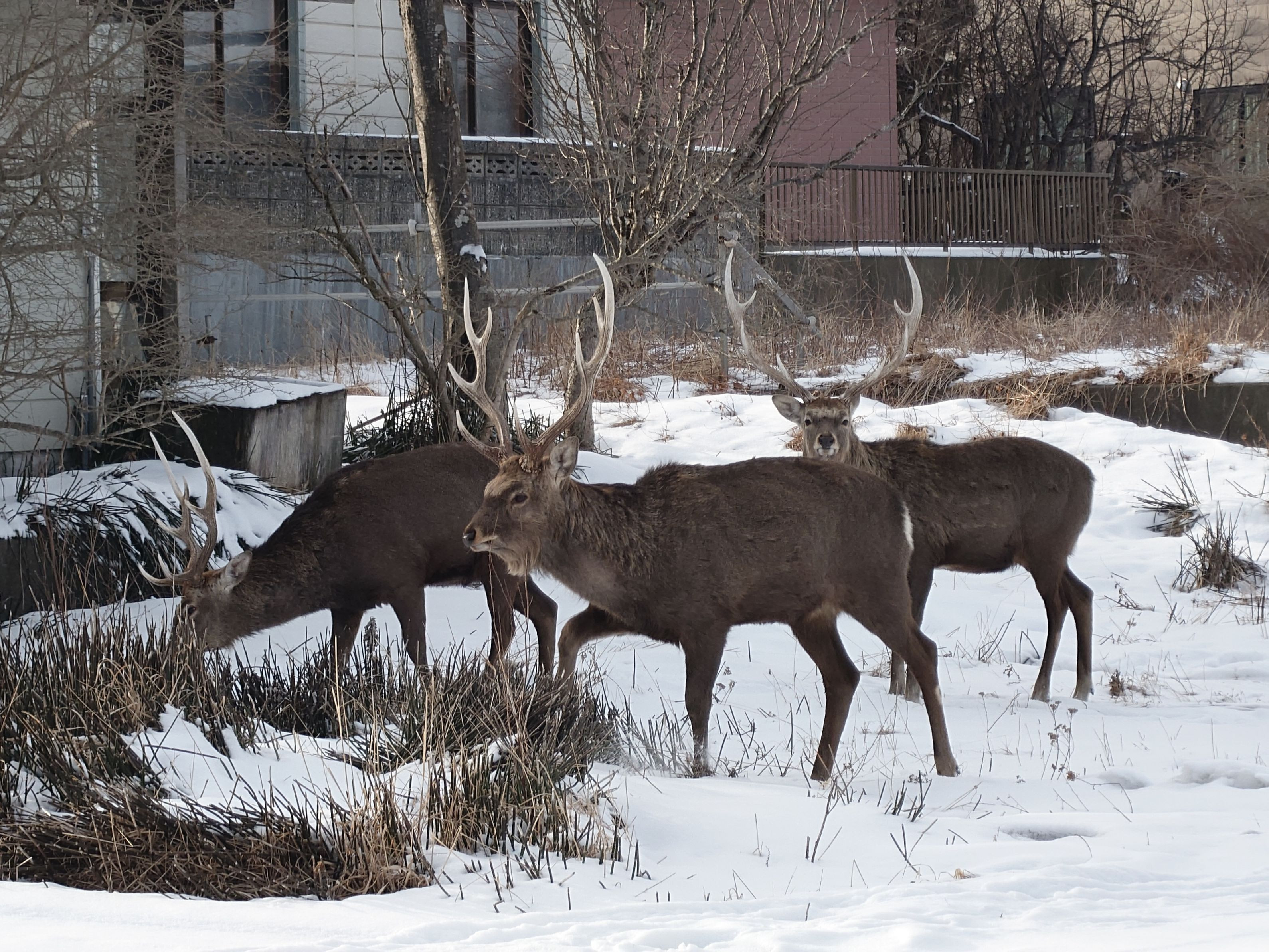 仕事帰りに小さなエゾシカの群れに遭遇しました。