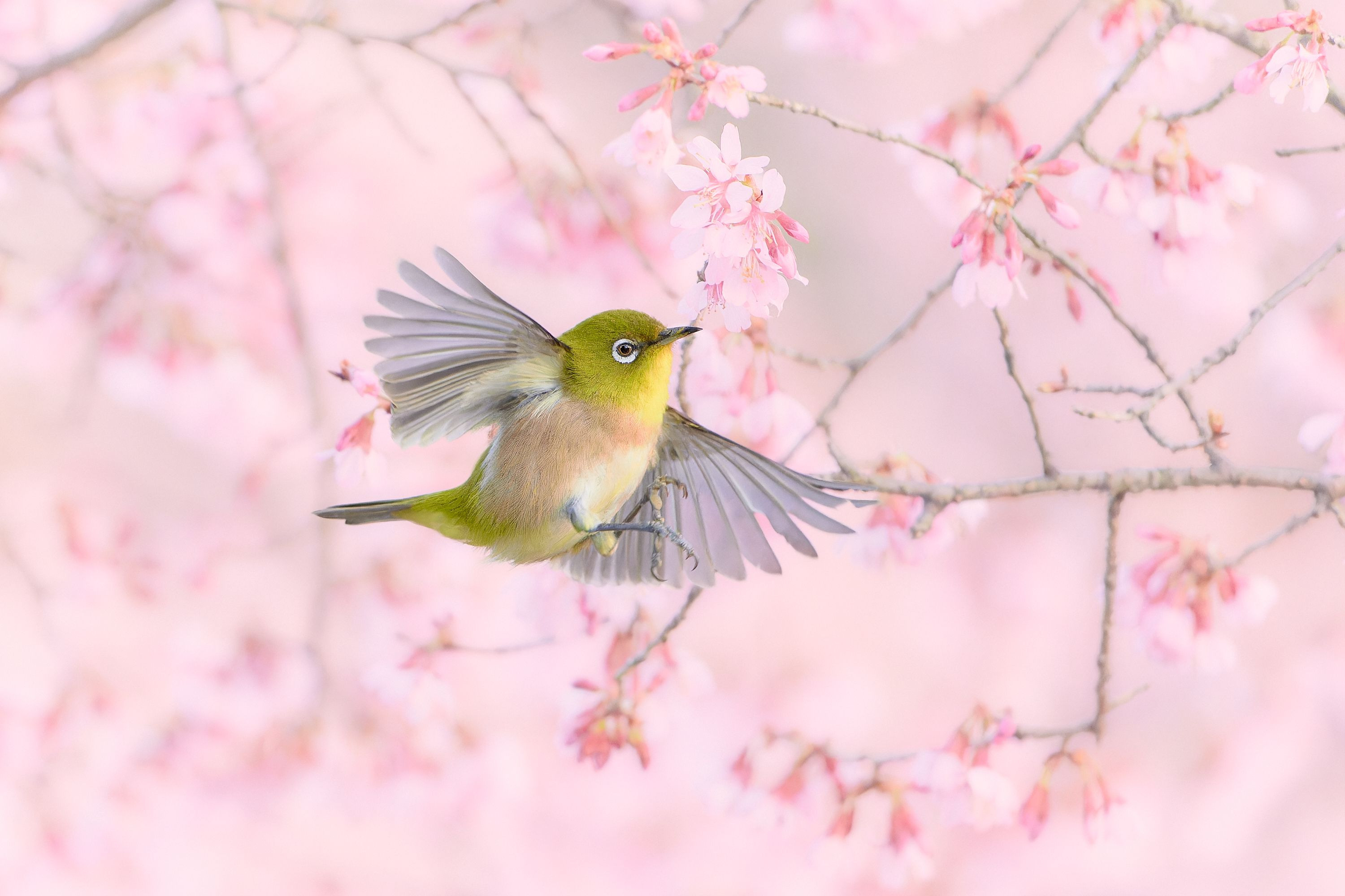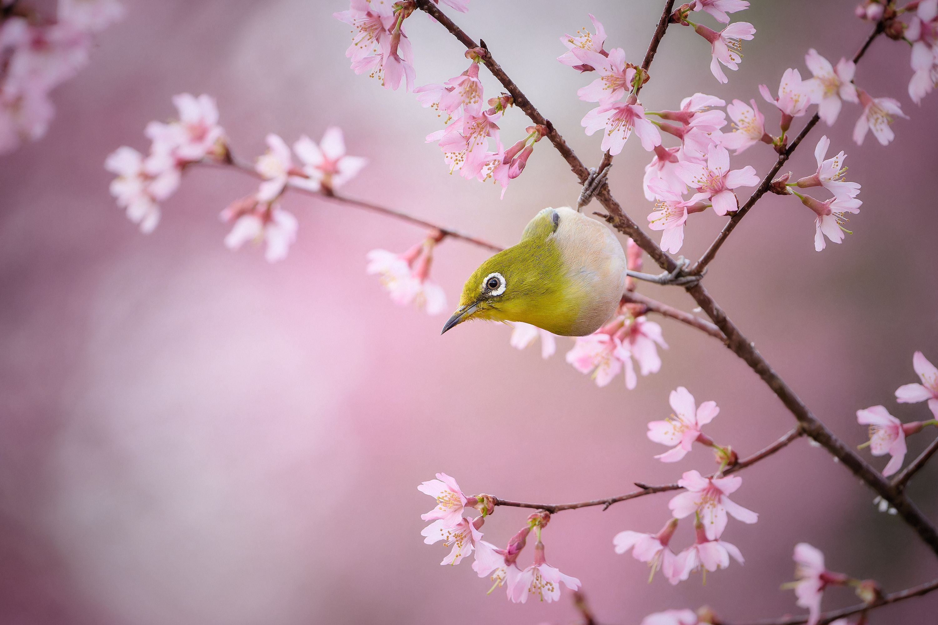 早咲きの桜の中、ひととき現れるメジロ。