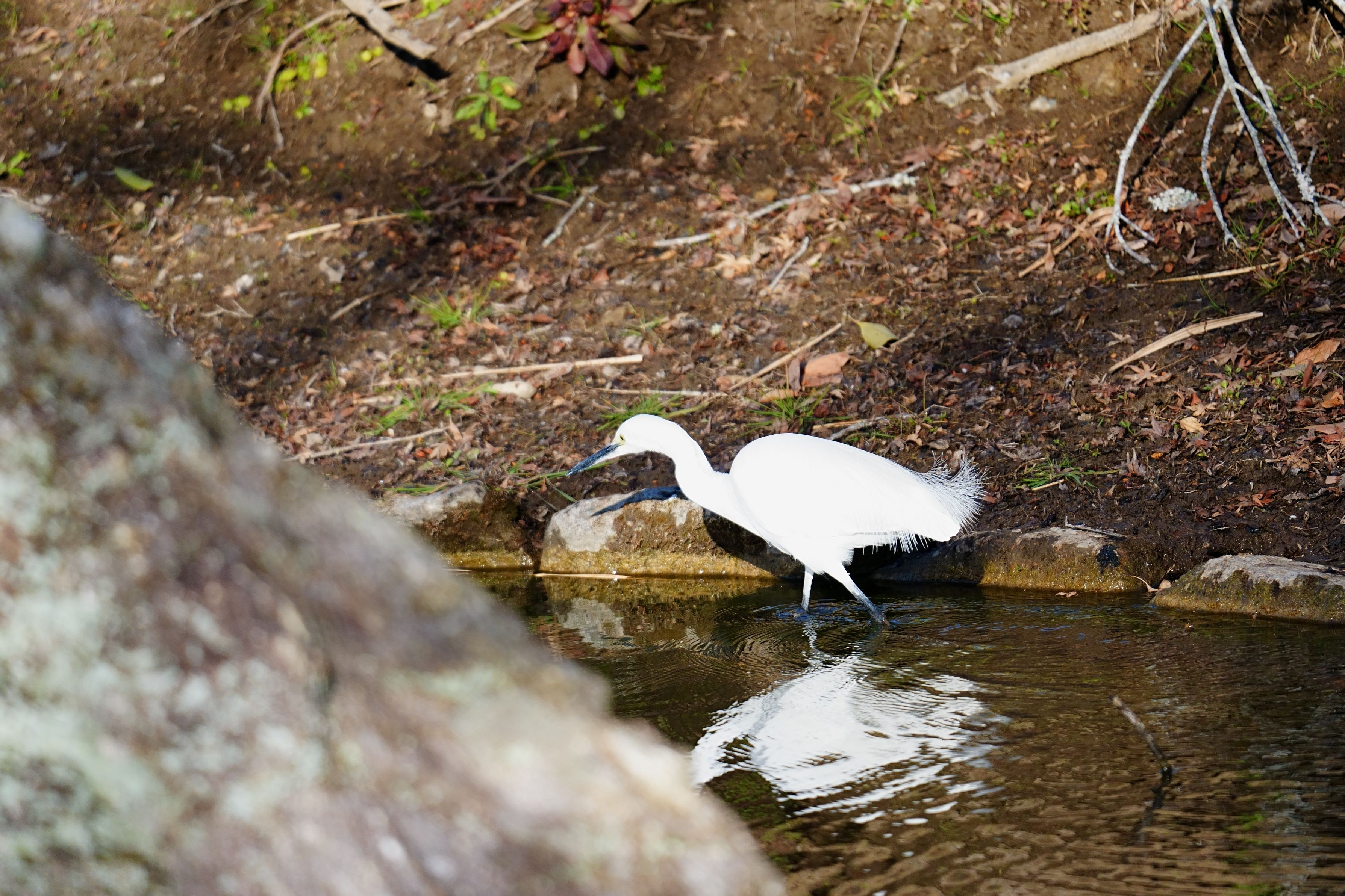 1月25日 part5より場所を変えての撮影から。。。 隣町の街中公園より。。サギさん コサギさんかチュウサギさん? そーッと狙いを定めているようです。