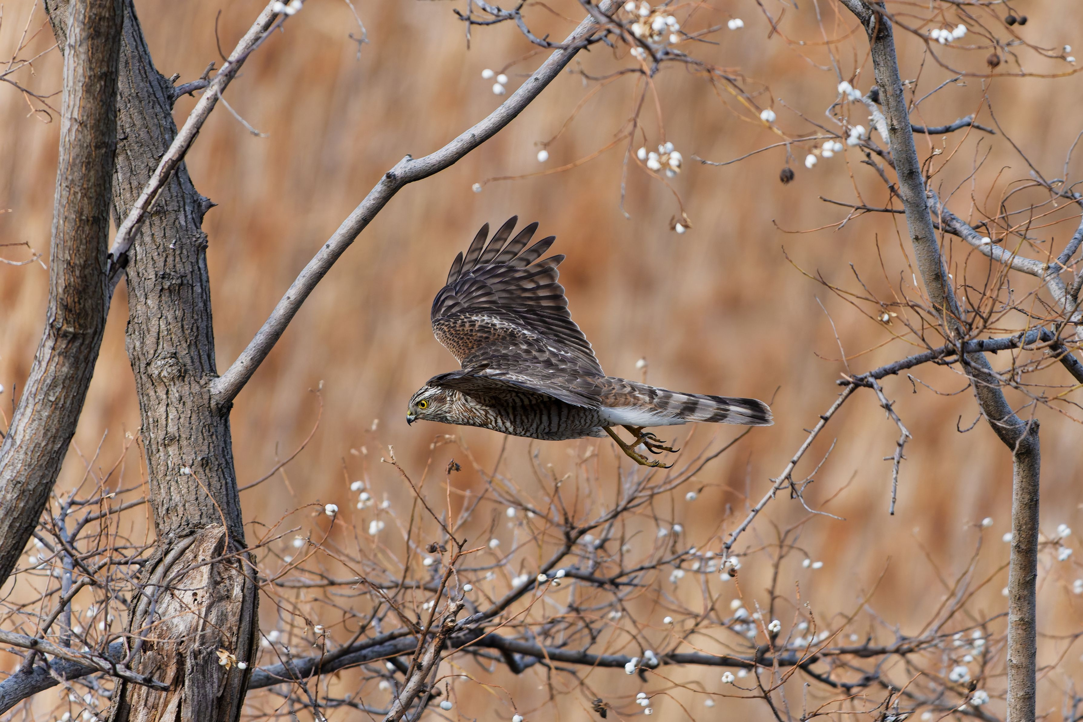 一瞬ですが、近くを飛んでくれたハイタカです。 今シーズンはハイタカをよく見かけるような気がします。