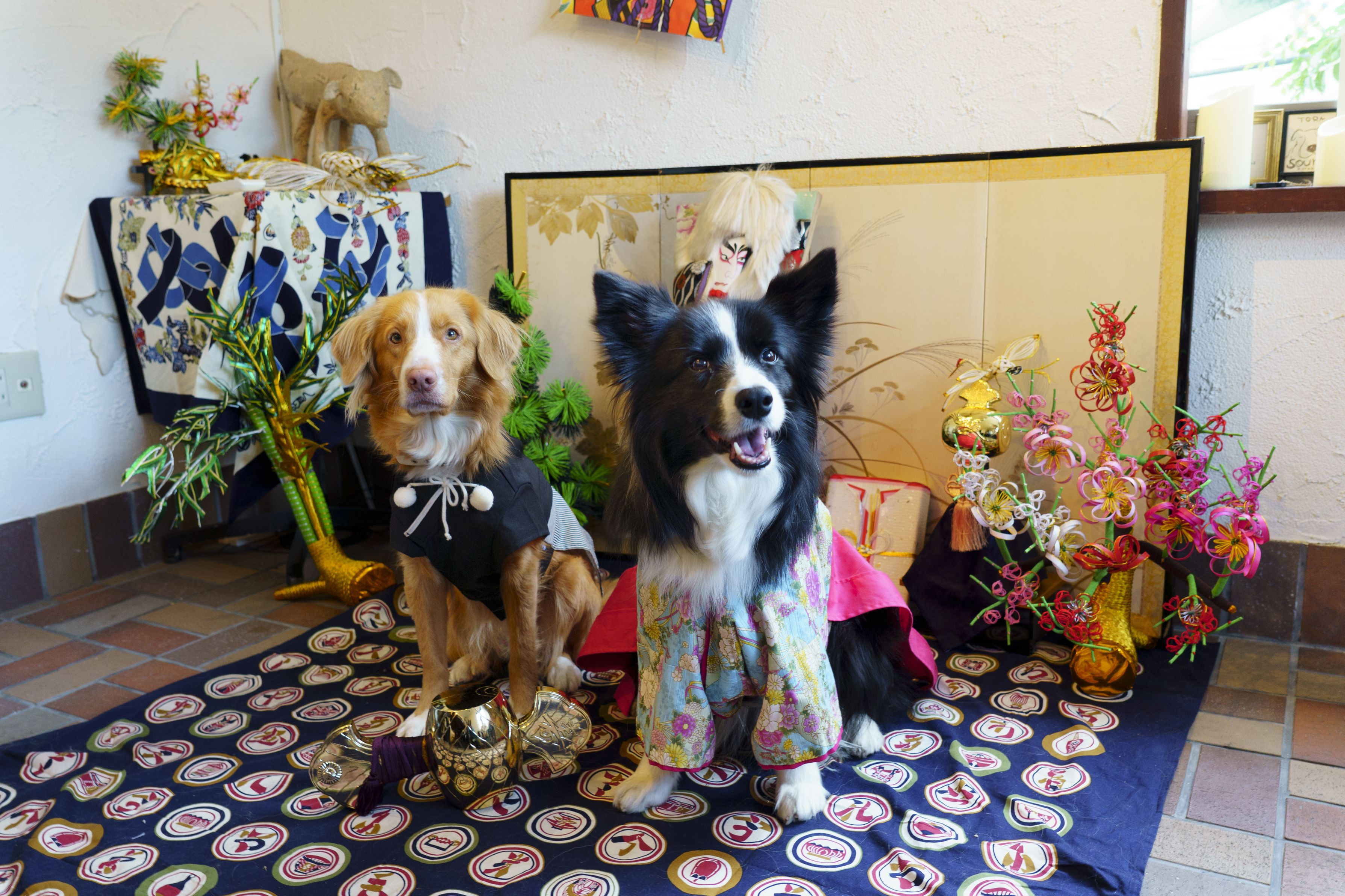 どちらも女の子ですが、紋付袴を借りれたので着せてみました。