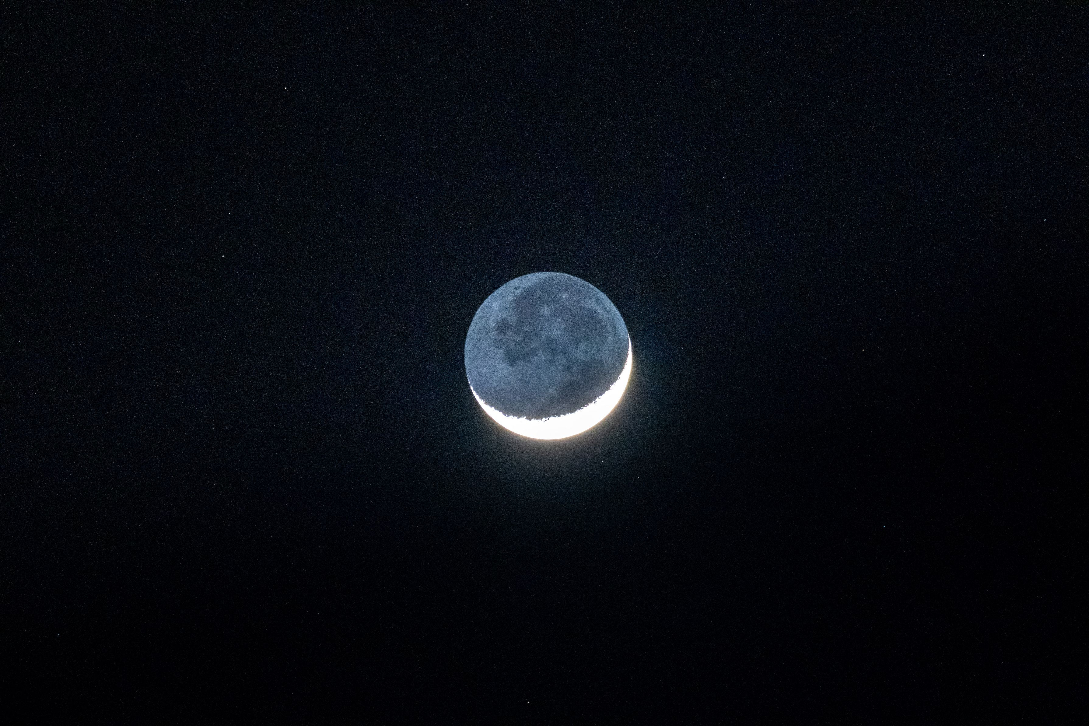 地球照を撮ってみました。もう一日早い方が良かったかも。