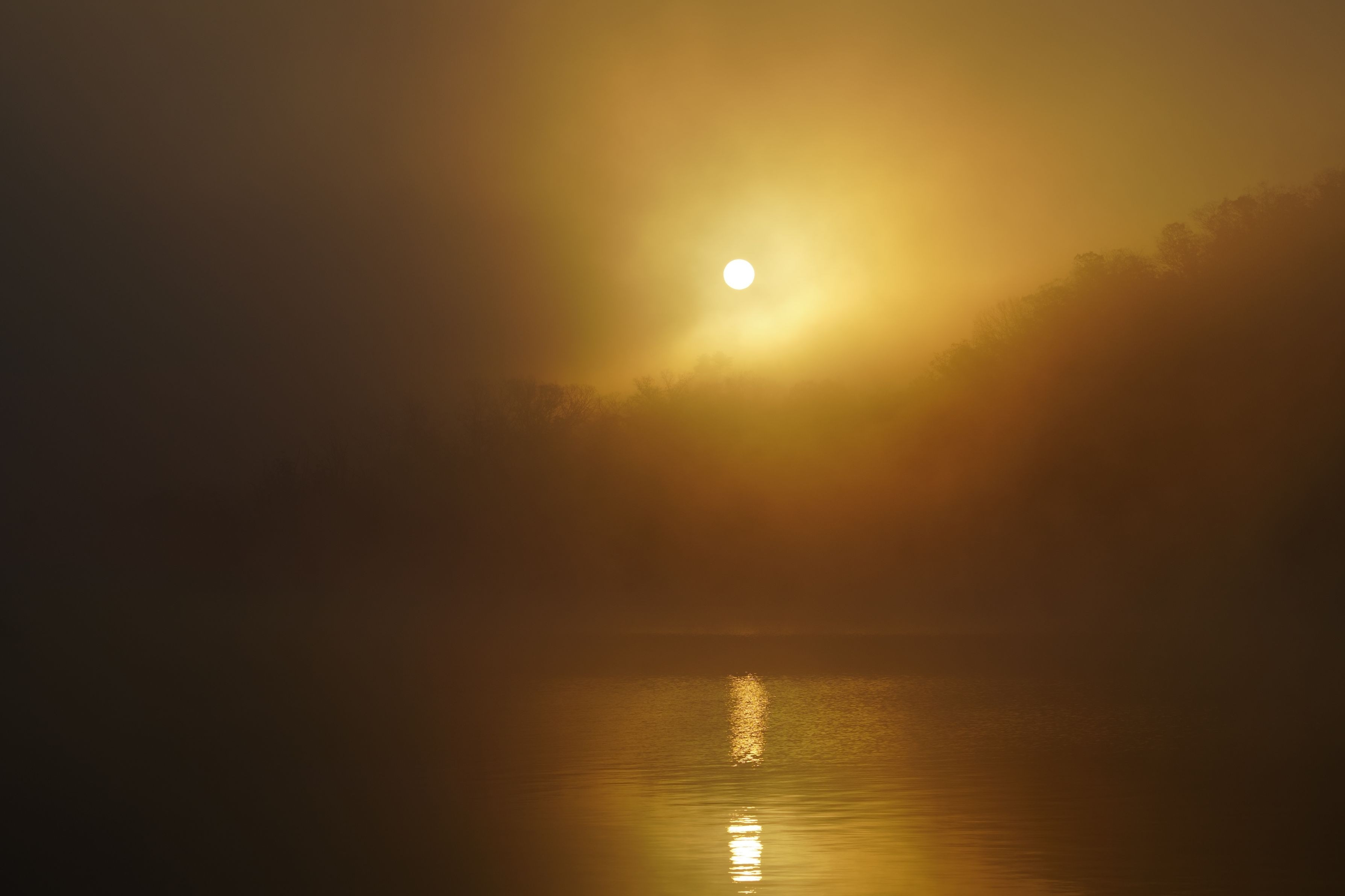 朝霧の湖畔