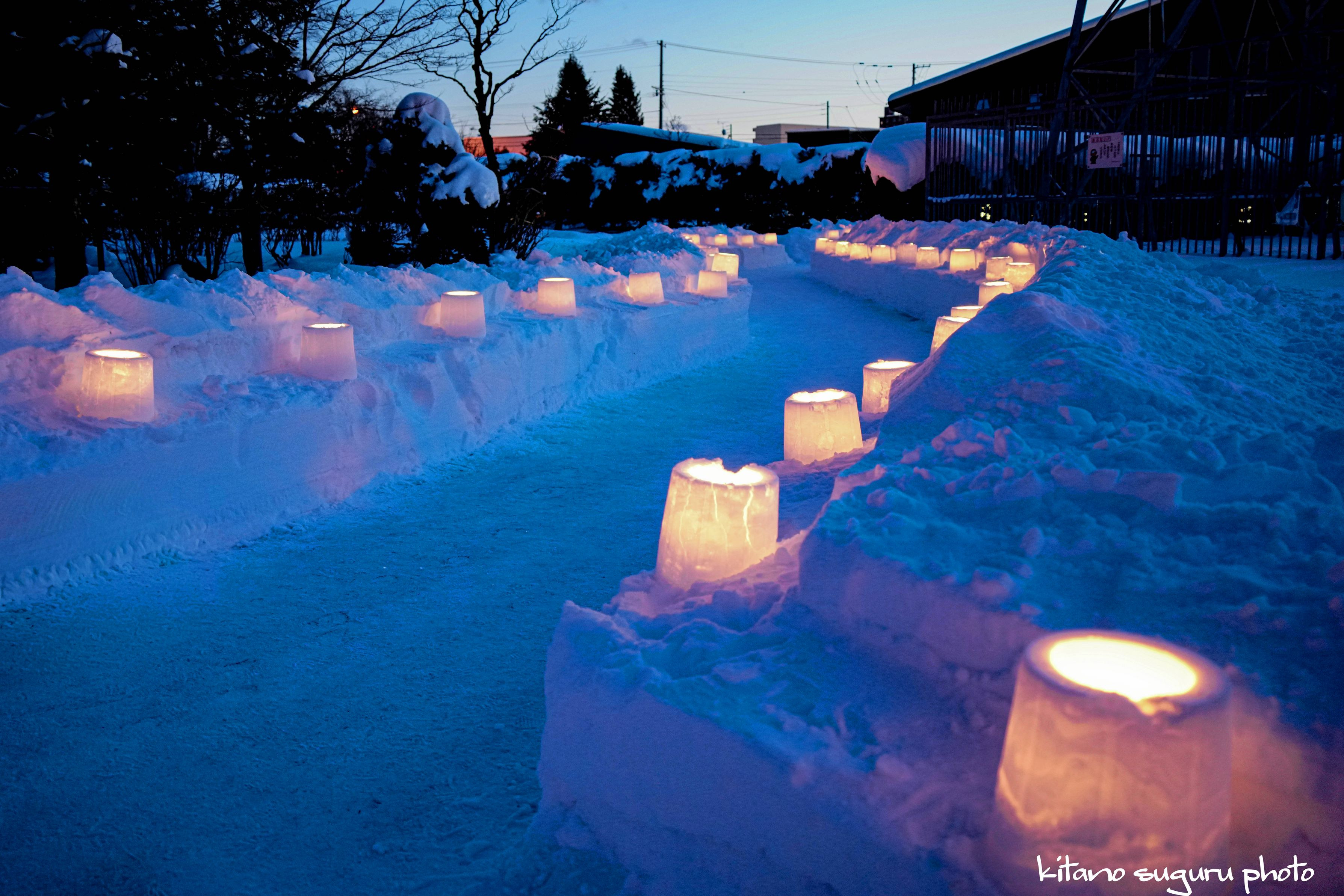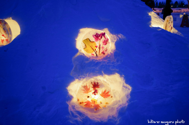 ここのアイスキャンドルのバックライトはローソク火なので、風が強いと消えてしまうので、 ボランティア人達は大変でしたね。