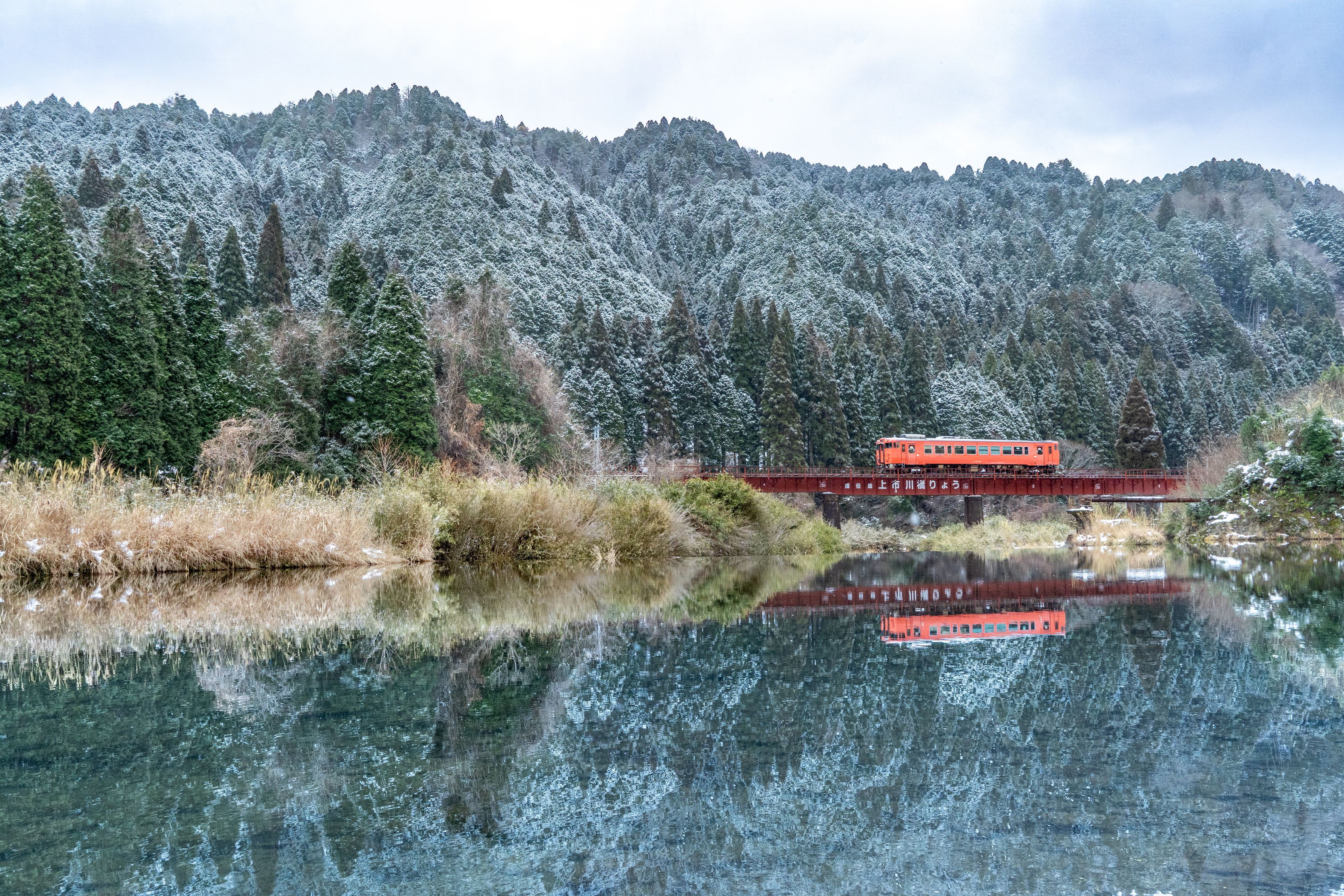 雪の播但線 橋梁を進む姿 運良く風もなく 良い条件が重なりました