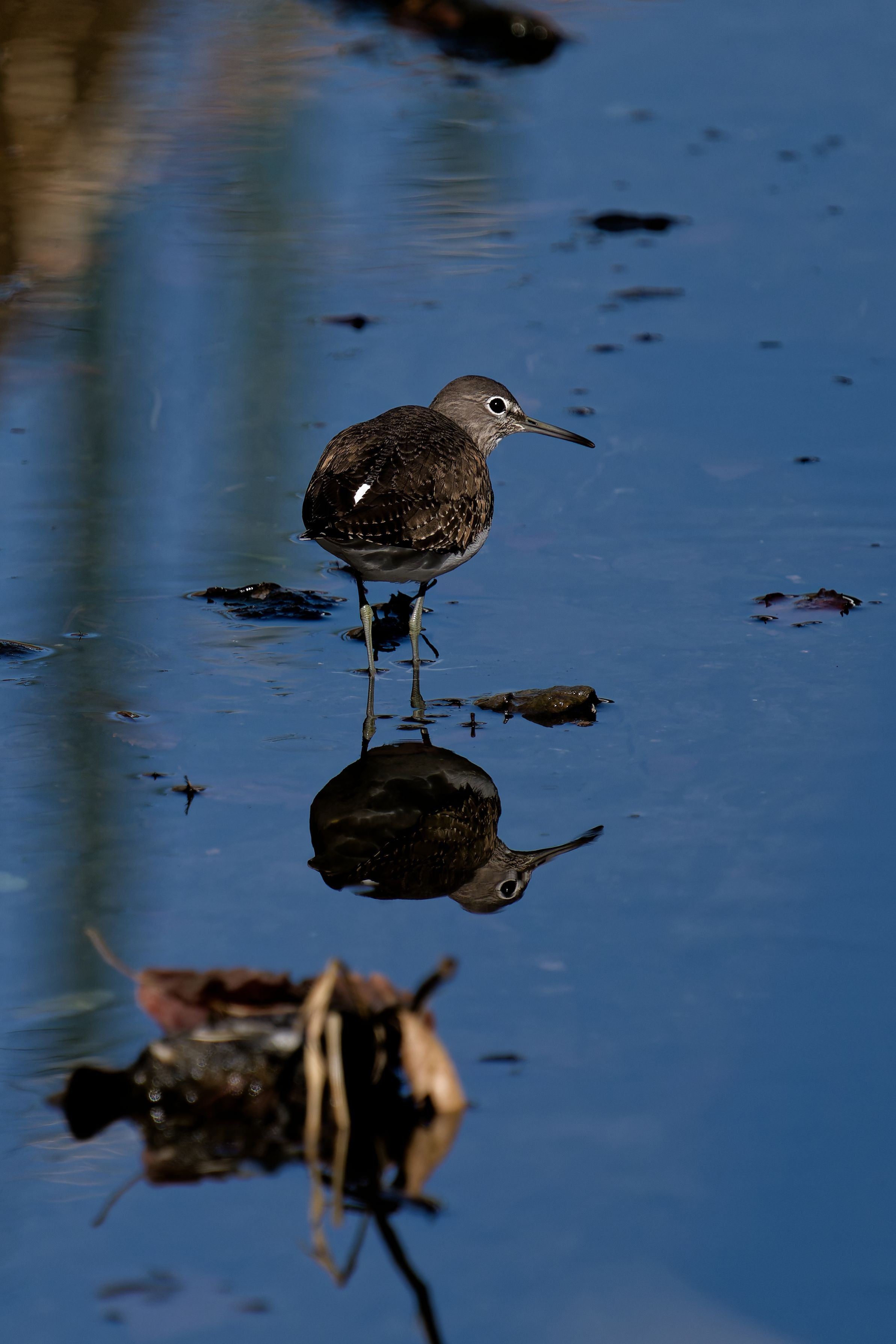 水路にいたクサシギが、こちらを振り返って見ていました。