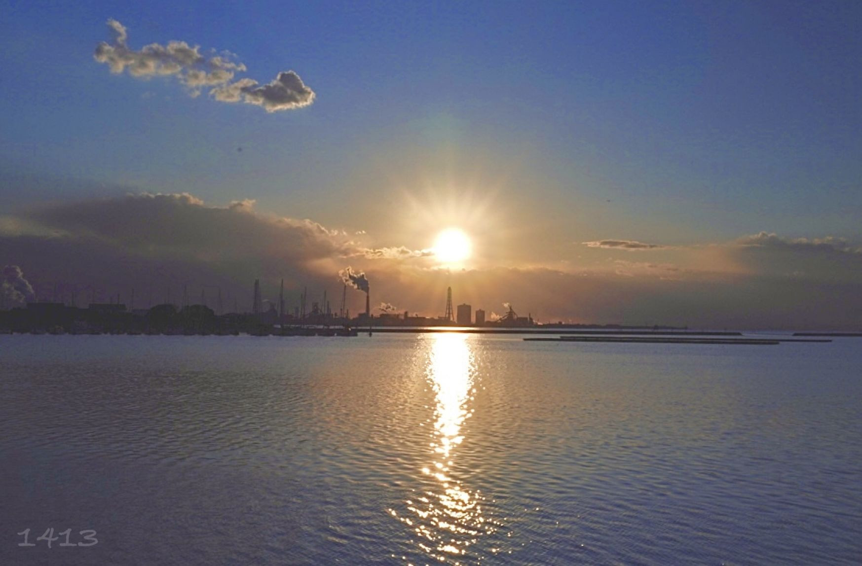 工場に溶け込む夕陽