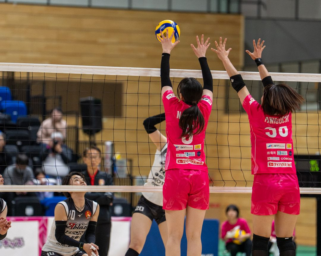 アルテミス北海道の永田選手と谷口選手のブロックシーンです。 知り合いの方からフルサイズ機をお借りしてみましたが、ノイズが少なくて良いですね。物欲が…💦