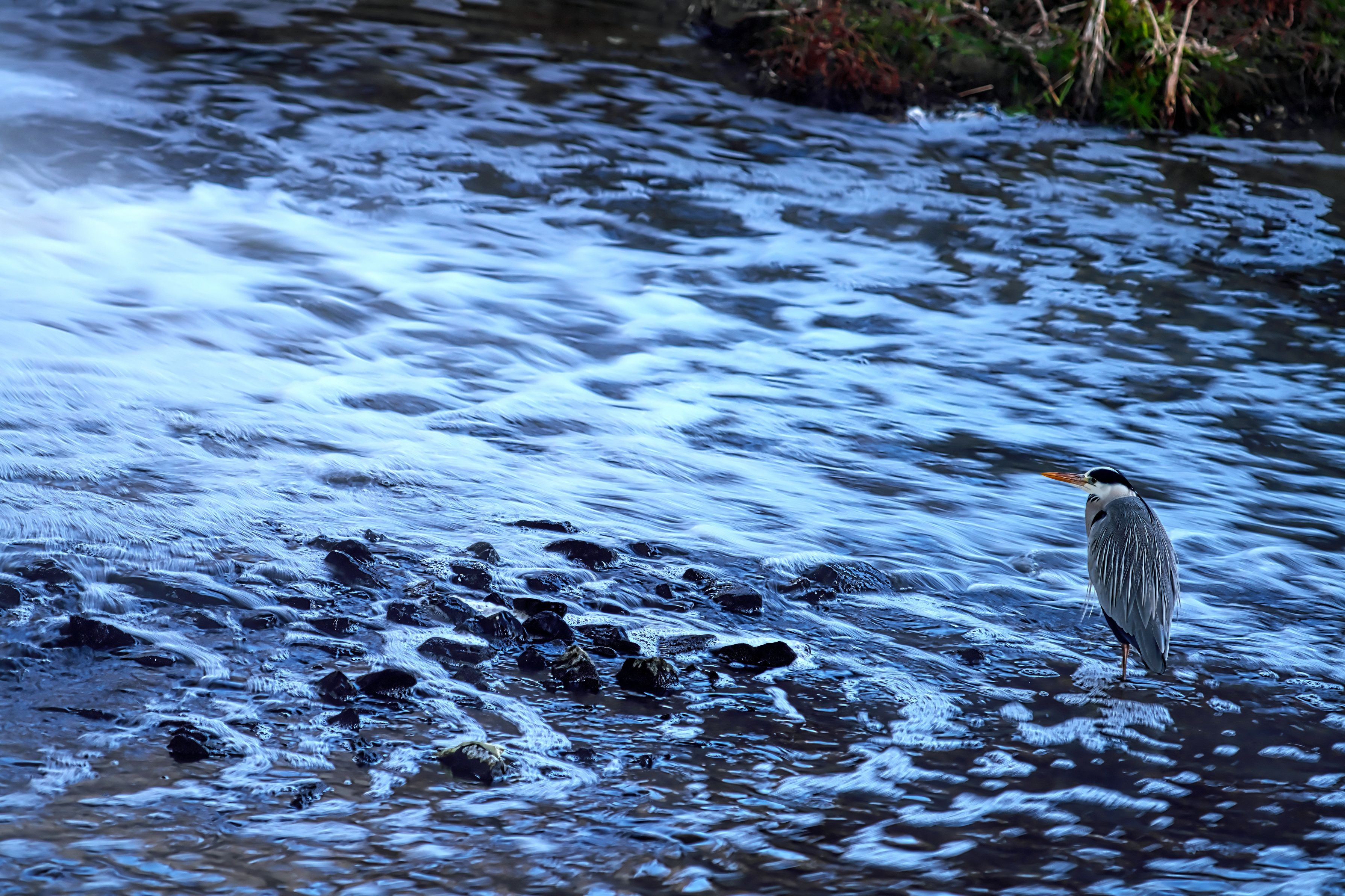 青鷺は冷たい川の中で独自の熱交換器で寒くないのですね