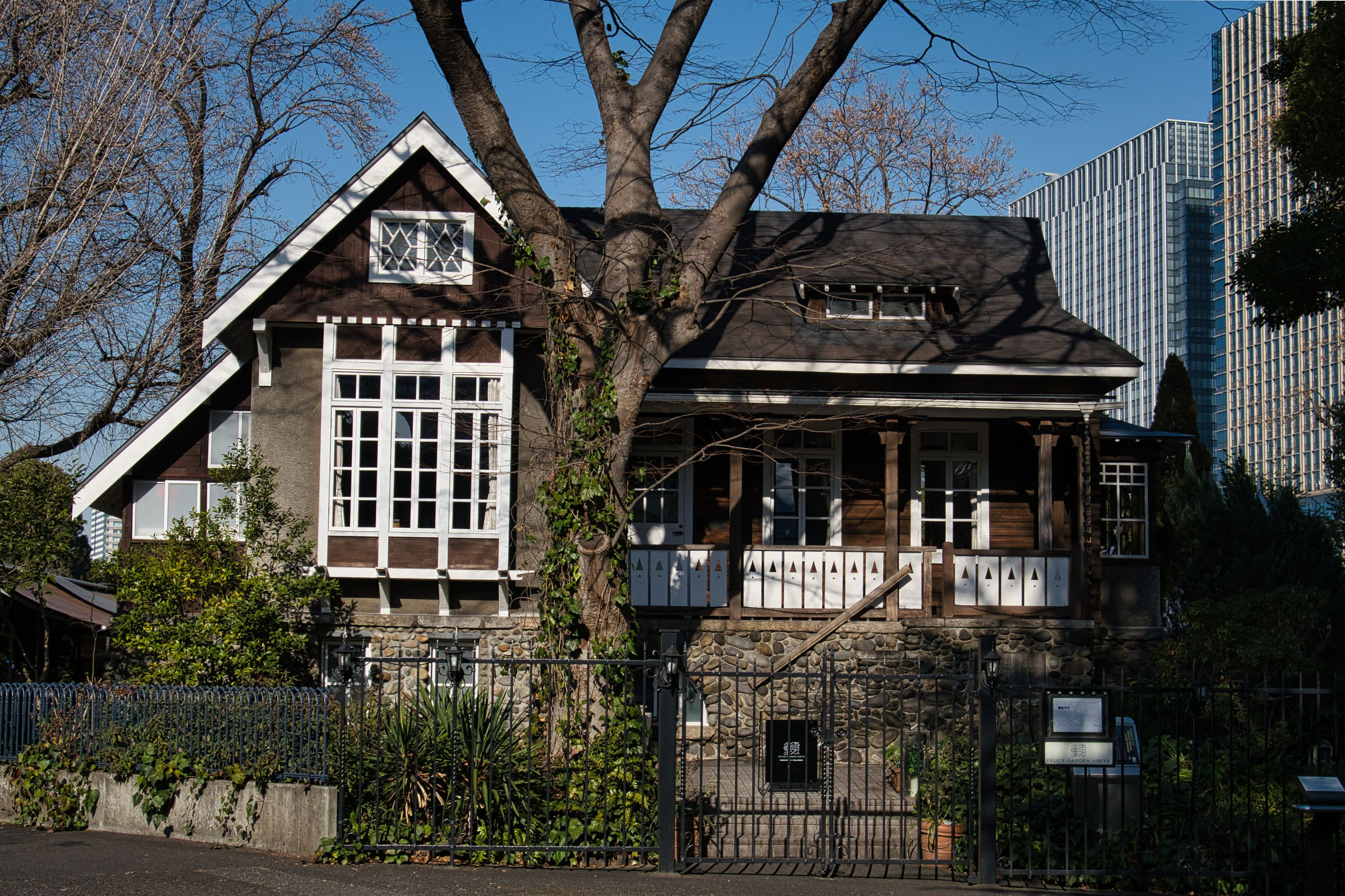 冬は建物が良く見えます。 1910年(明治43年)に日比谷公園の管理事務所として建設されました。 ドイツ・バンガロー風の瀟洒な建物で、東京都指定有形文化財(建造物) #東京都#