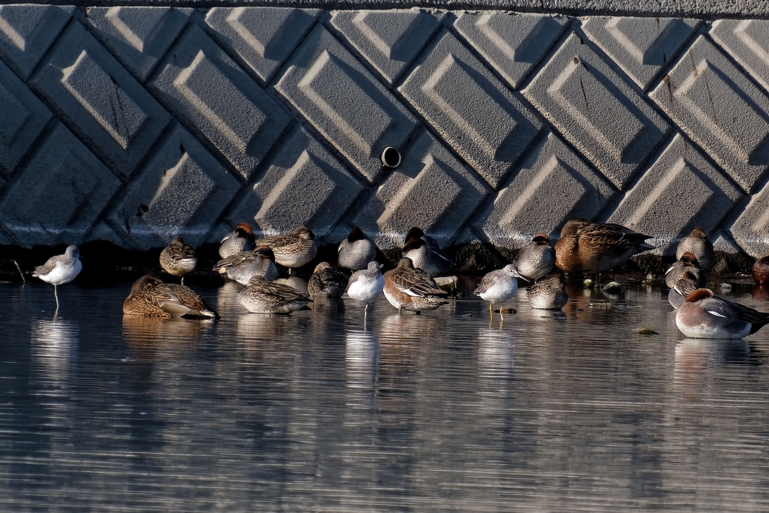 対岸の鳥の群れのなかに1羽だけいる鳥を見に行きました。 9時前に着いて、お昼まで見ていましたが、この日はほぼ動きませんでした。 7時半ぐらいには手前に来たそうです。もっと早朝か、夕方が狙い目かもしれません。