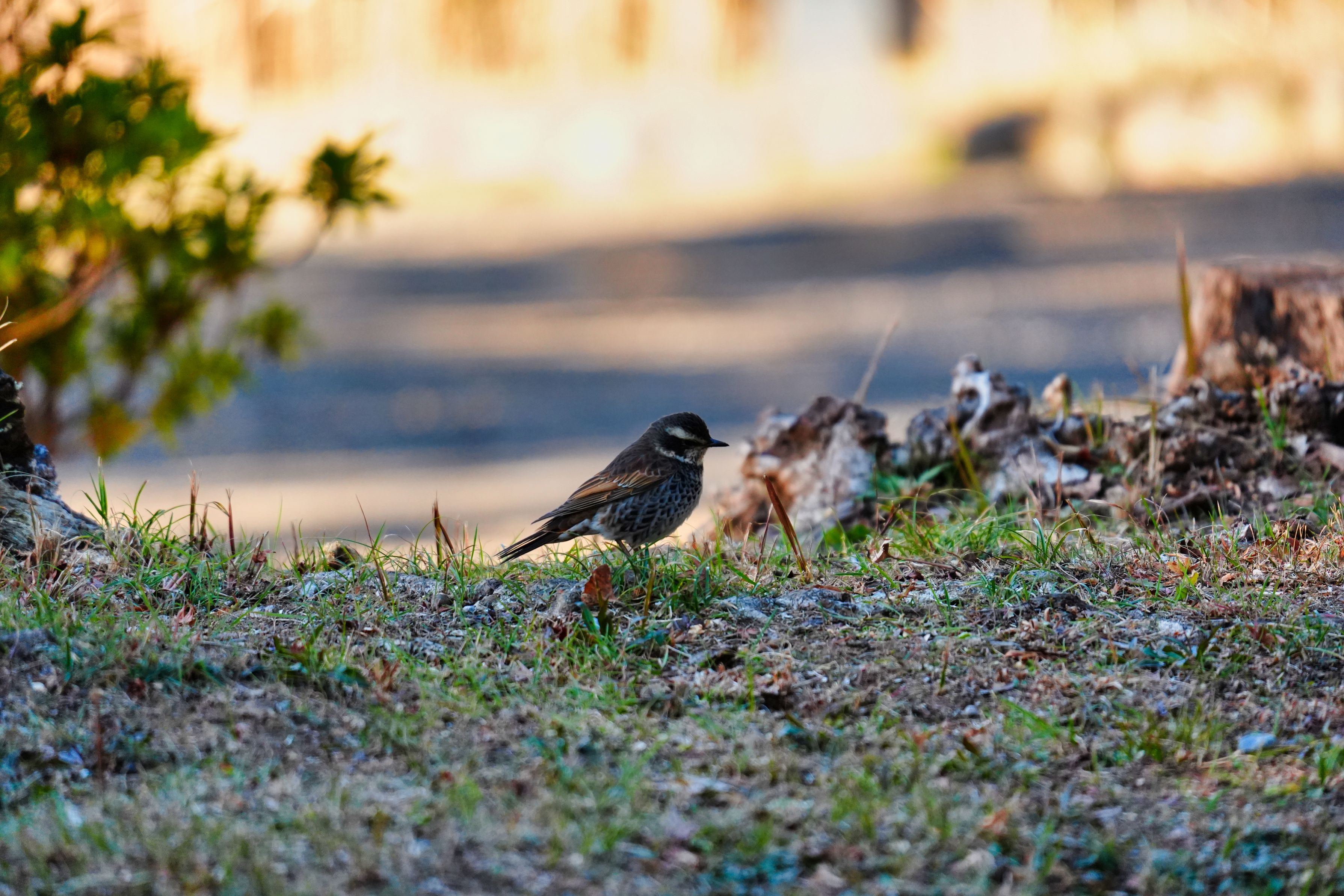 1月25日 隣町の運動公園にて。 家の近くでも見られるようになったツグミさんです。 奥には小さいですが池となっています。 今季二度目のツグミさん明るさを調整し見栄えを良くしています。 背景の朝暘らしさもいいでしょうか。
