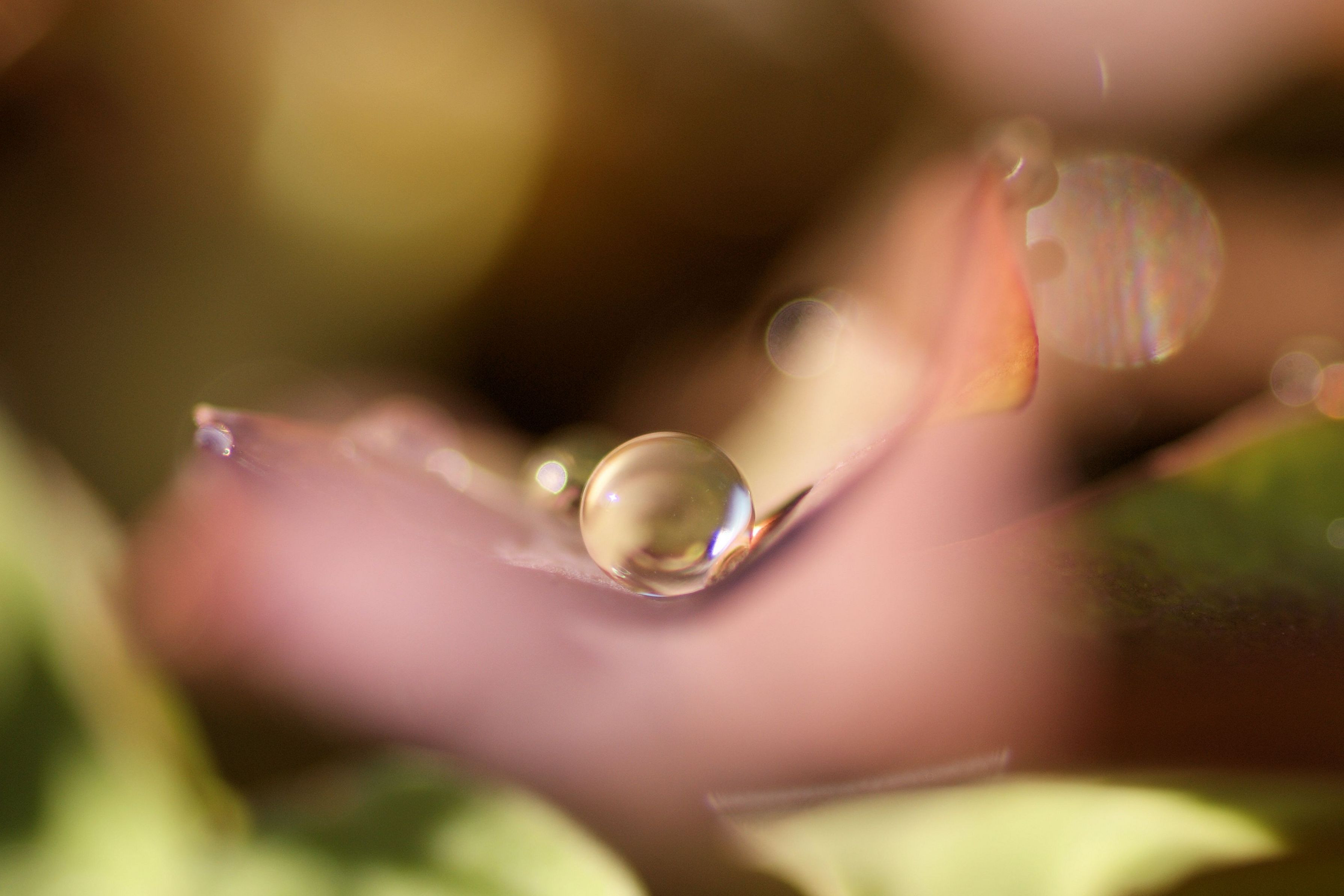 赤色の葉の上のしずくです。 緑の葉が待ち遠しいですが、もう少し待たねばなりません。 EXIFに出ないので レンズ:TAMRON 90mm F2.8
