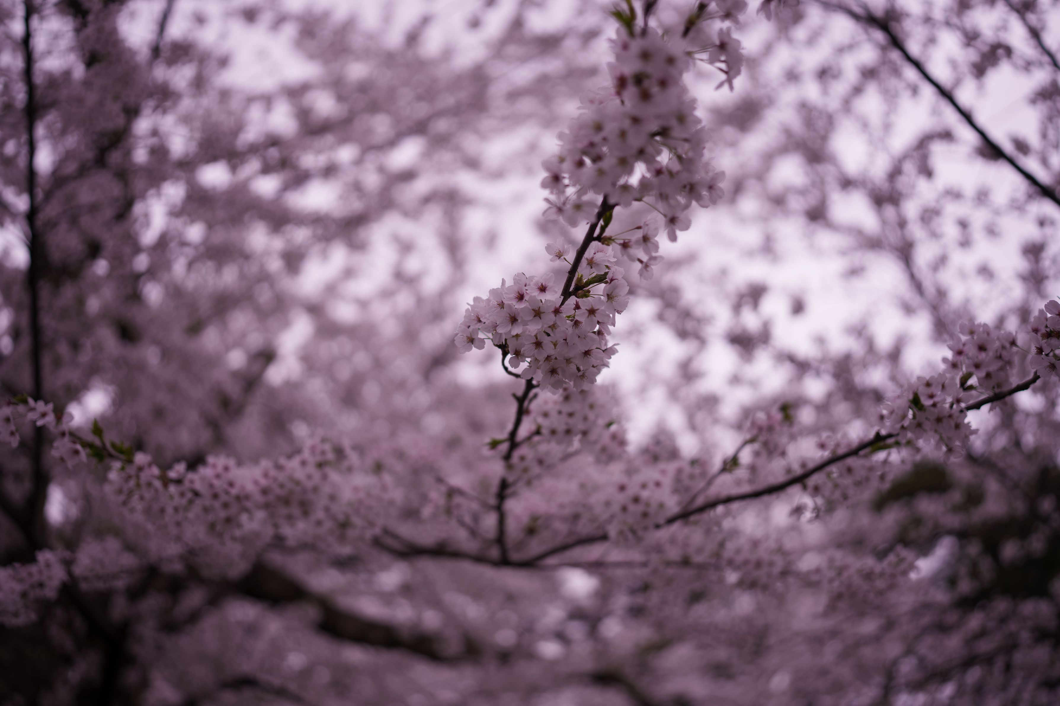 弘前公園の桜を浅いピントで切り取った一枚。やわらかな光が花の輪郭をそっと包む。