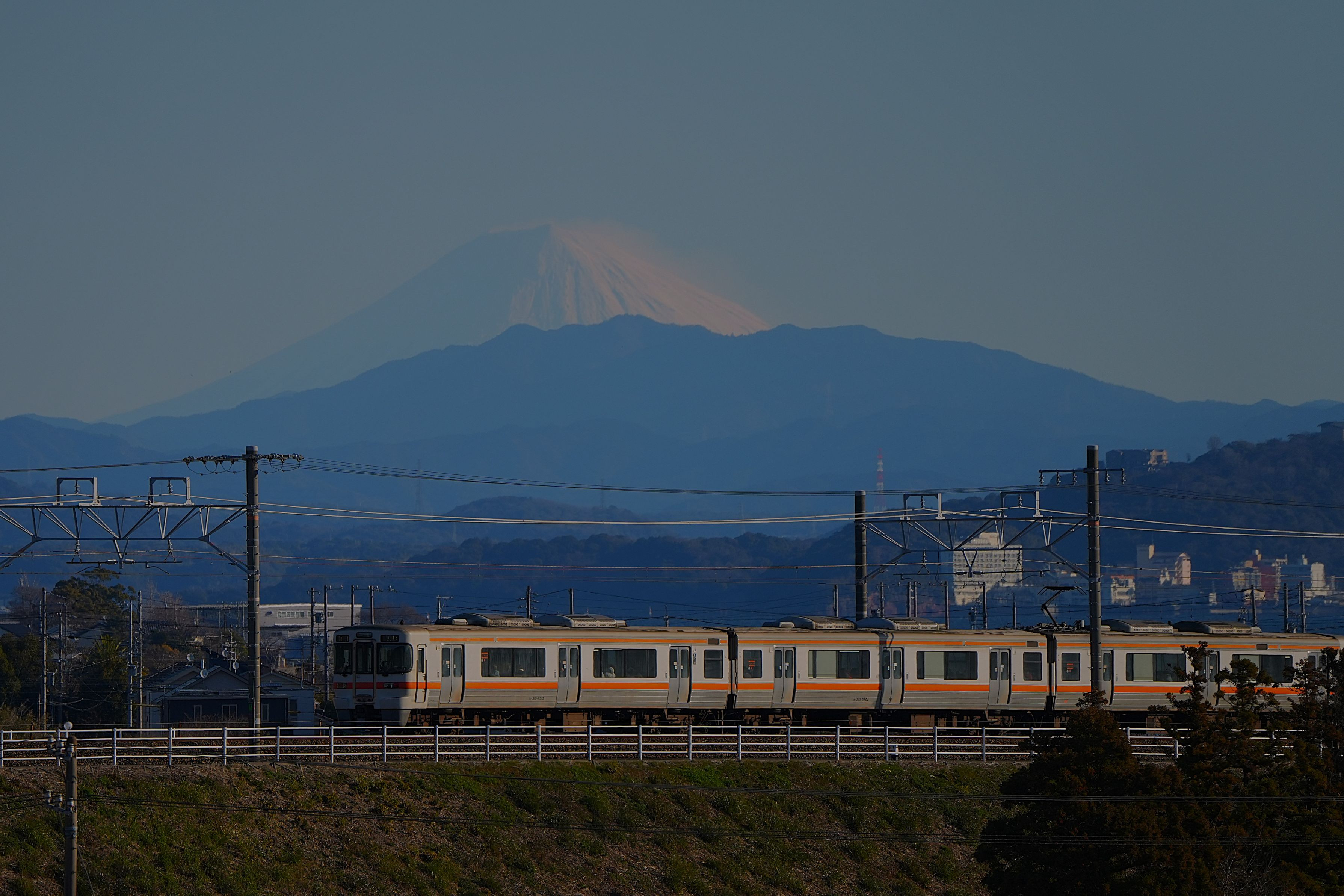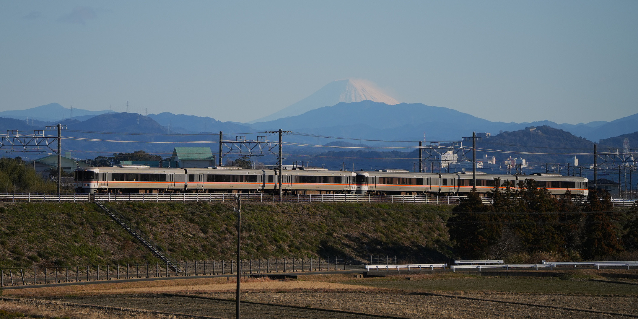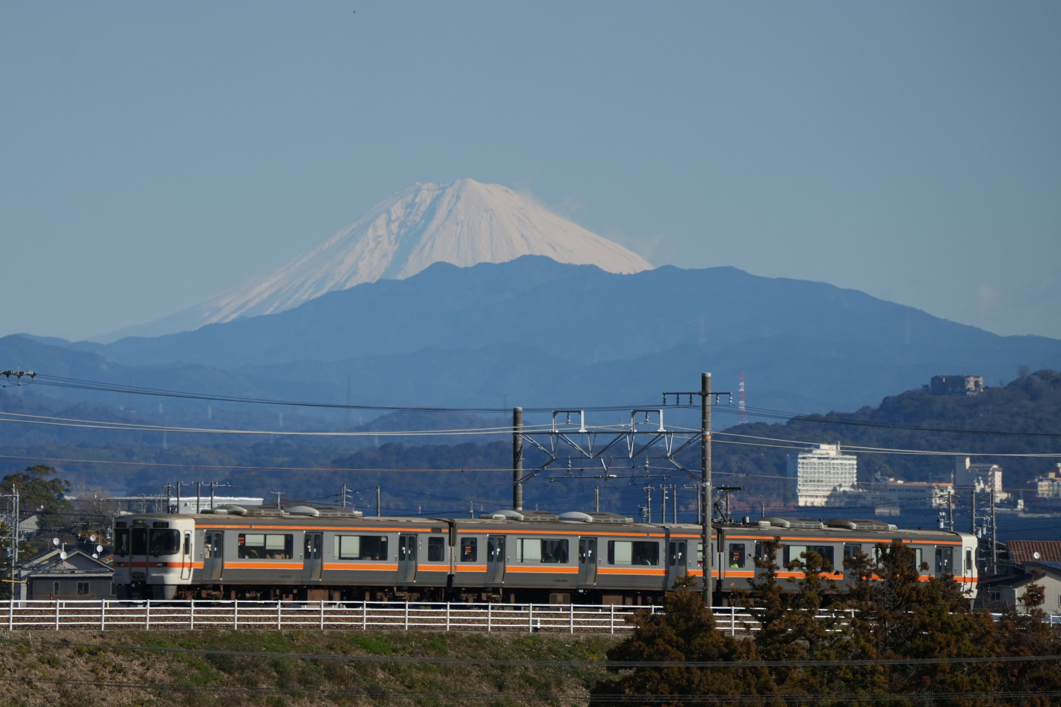 新所原駅~鷲津駅間の富士山が見える高台にある運動公園で撮影しました。最近は撮影に行ってもぼんやりと見えることばかりだったので久しぶりにくっきり見える富士山と電車を撮影できました。