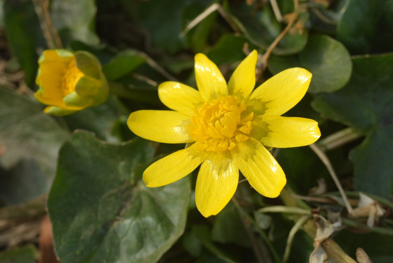 キクザキリュウキンカが咲いていました。花がキラキラ輝いて綺麗です。 マクロ60mm F8でマニュアル撮影しました。