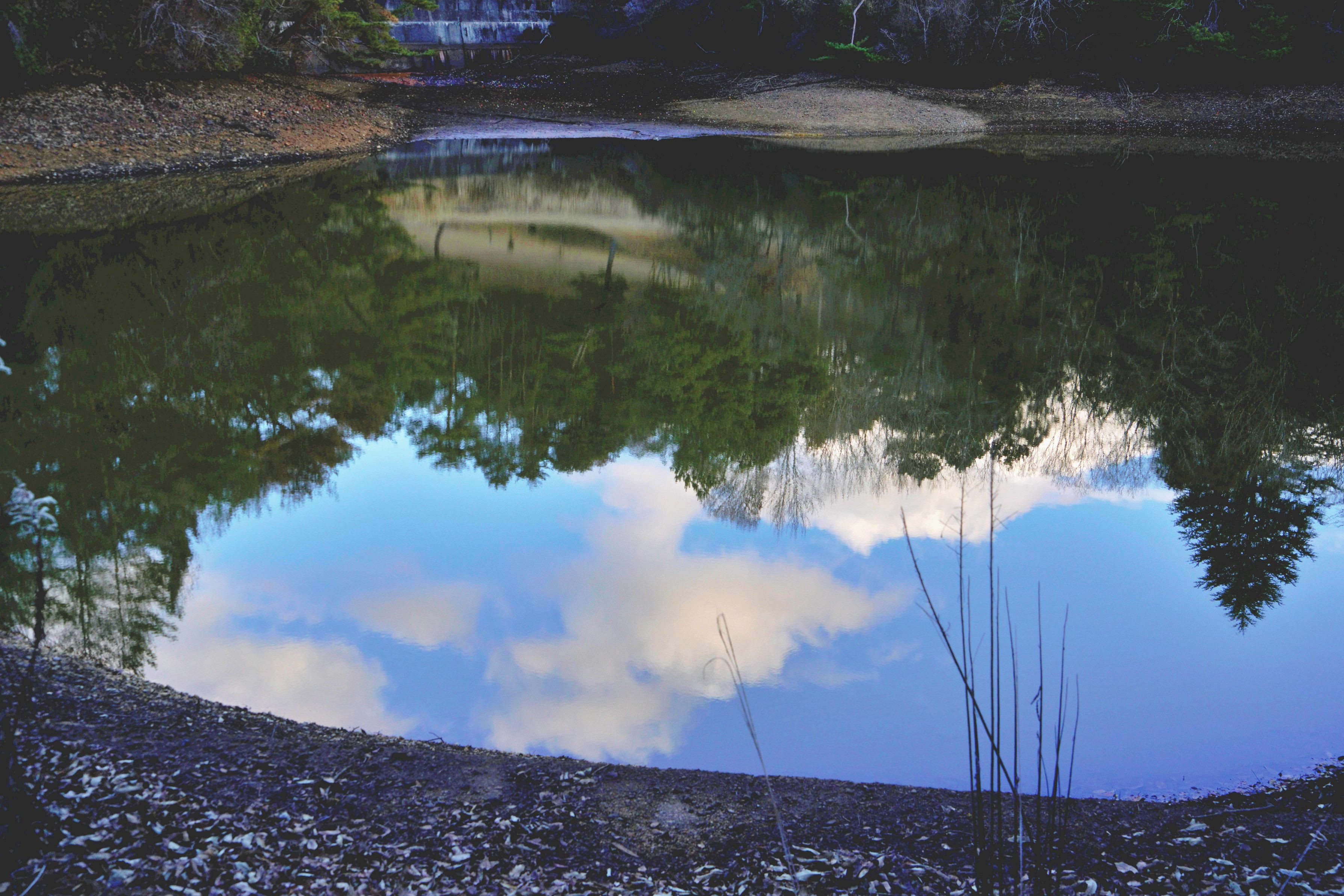 池の水も今年の雨量の少なさで水位が低く水面自体丸くなっていた。丸鏡の様に水面に映る景色も普段見れない出会いとなった。 一級河川の加古川も水位は低く岩肌がいつもより露出して流れに変化をもたらしていたので造形的に変化が見られた。