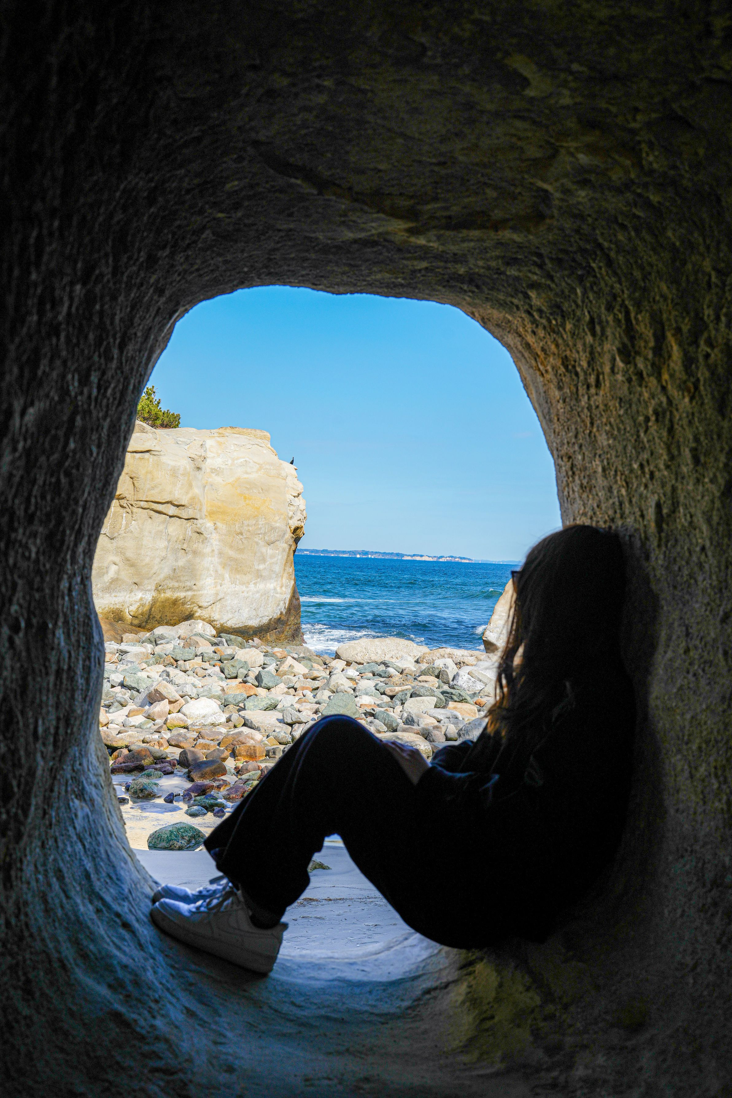 腰を下ろし、ただ海を眺める。 高戸小浜海岸の光と波音が、静かに思考をほどいていく。 何もしない時間も、ここでは風景になる。 撮影地:高戸小浜海岸