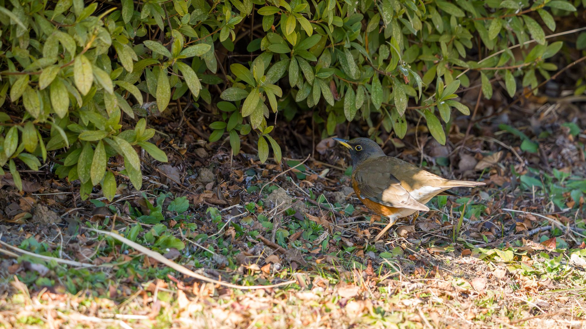 足元でガサガサ。 だいたいアオジ。 時々アカハラ。 遊歩道挟んでベンチの向いにいました。 #アカハラ#