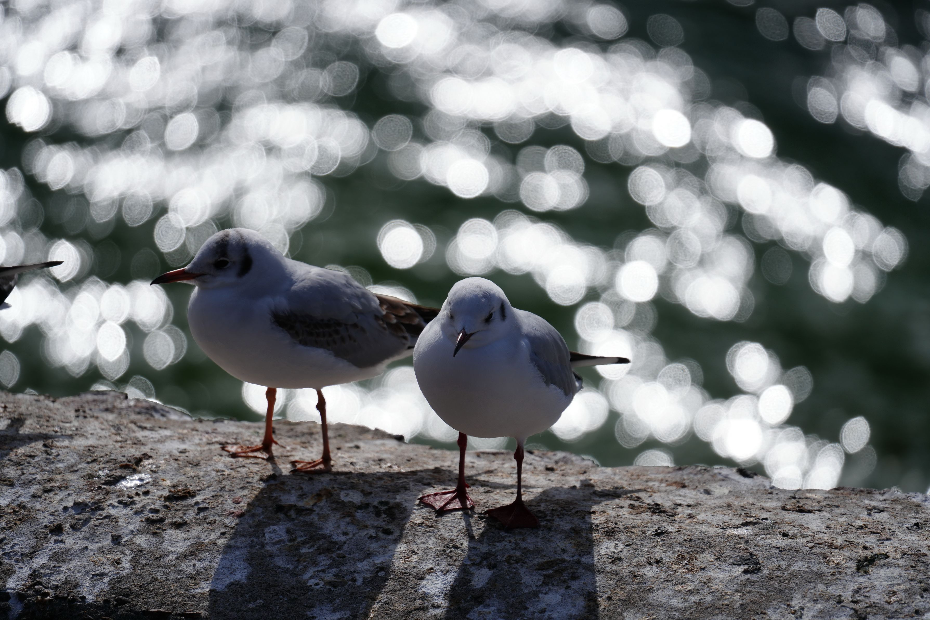 天竜浜名湖鉄道の浜名湖佐久米駅の岸壁にいたユリカモメです。午後の湖面の光の中で二羽佇んでいました。