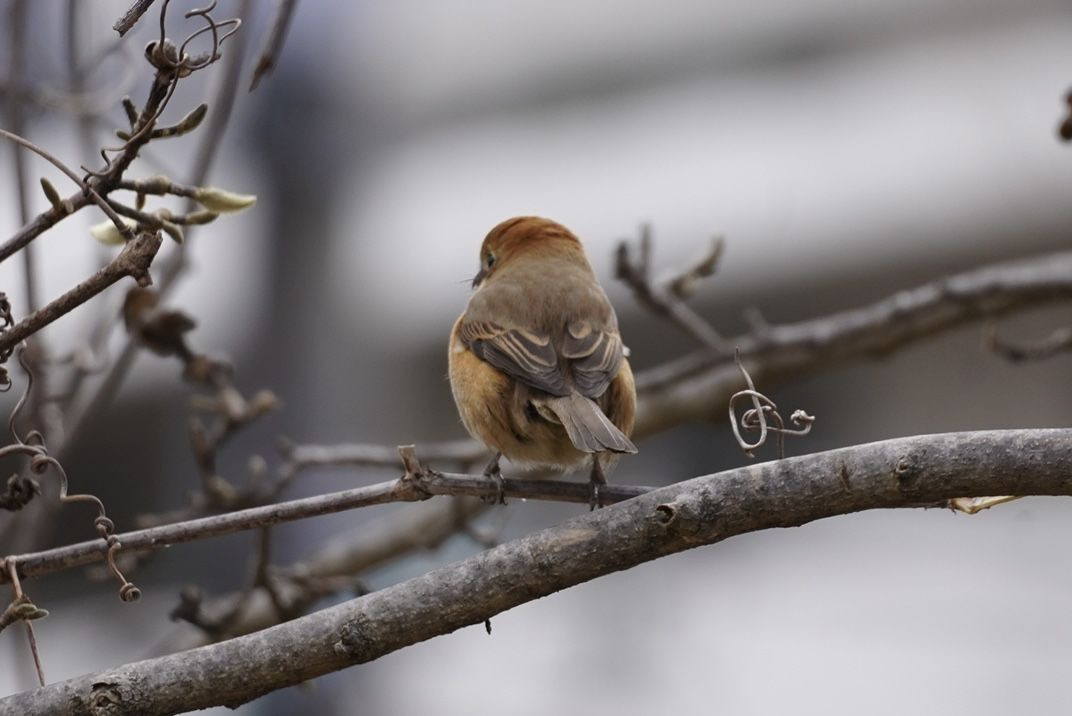 もふもふのお尻がかわいいモズさんです。 こっちを向いてくれなかったけど癒やされるました✨