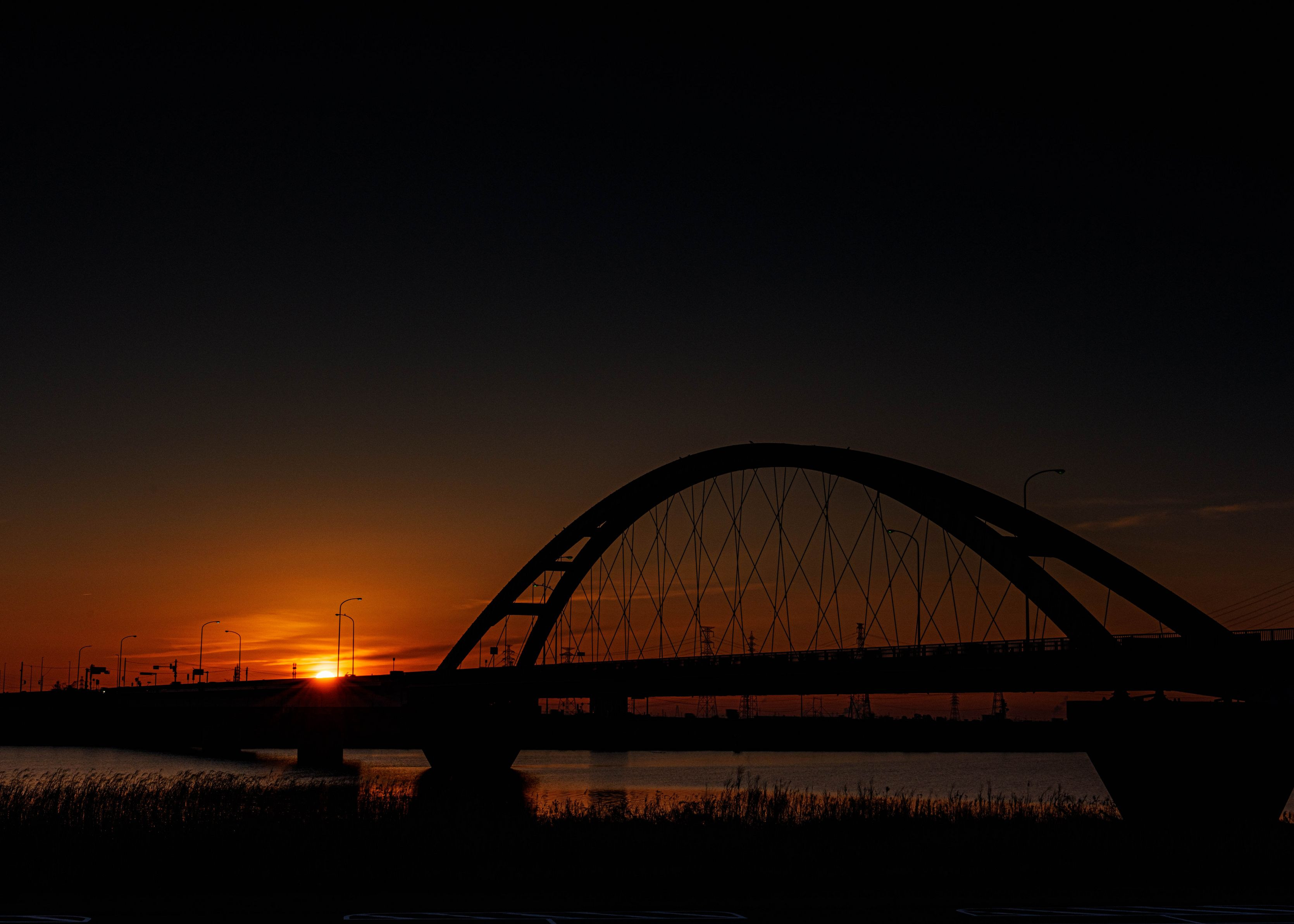 ★木曽三川 長良川大橋★ 氷点下まで冷え込んだ昨朝の日の出です。木曽三川公園の長良川西堤より撮影しました。登りつつある朝日に活力がもらえたような気がしました。