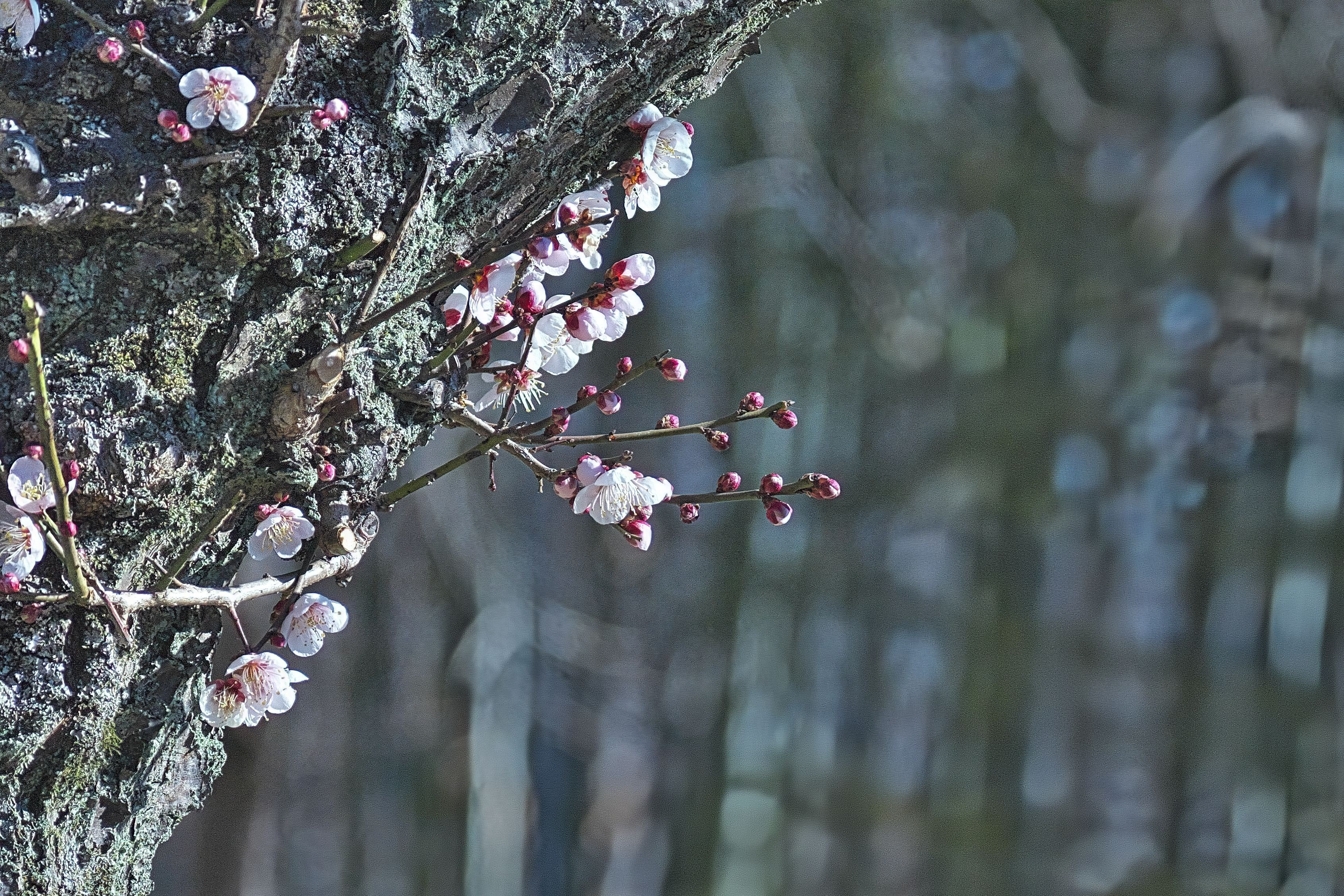 蝋梅に白梅