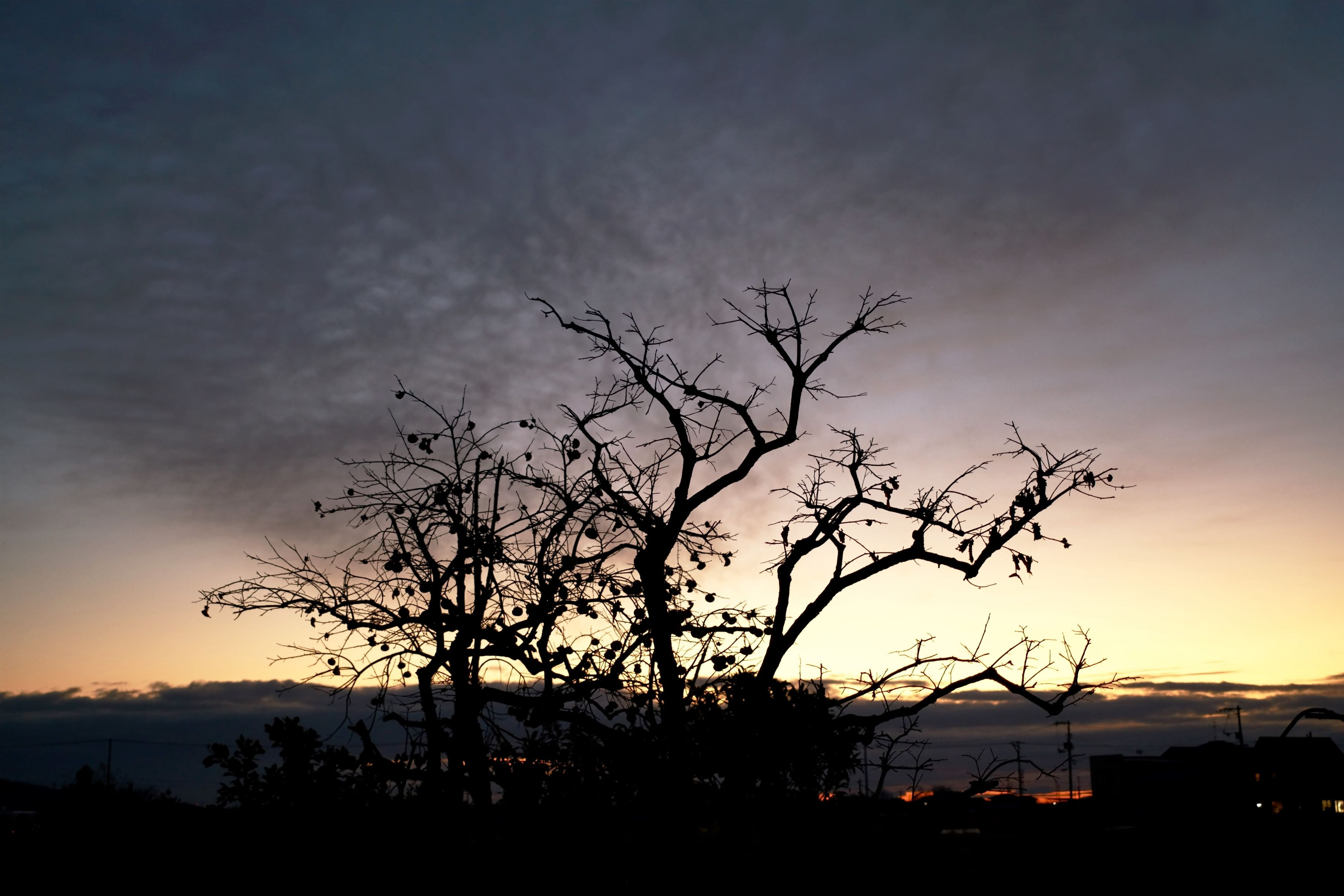 毎朝散歩で撮りました。寒くて凍える朝でした。 老木の柿ですが、実は沢山なっていました。多分渋柿でしょうね。 ガリガリの柿の木は、夜明けの明るさに何か訴えているようでした。