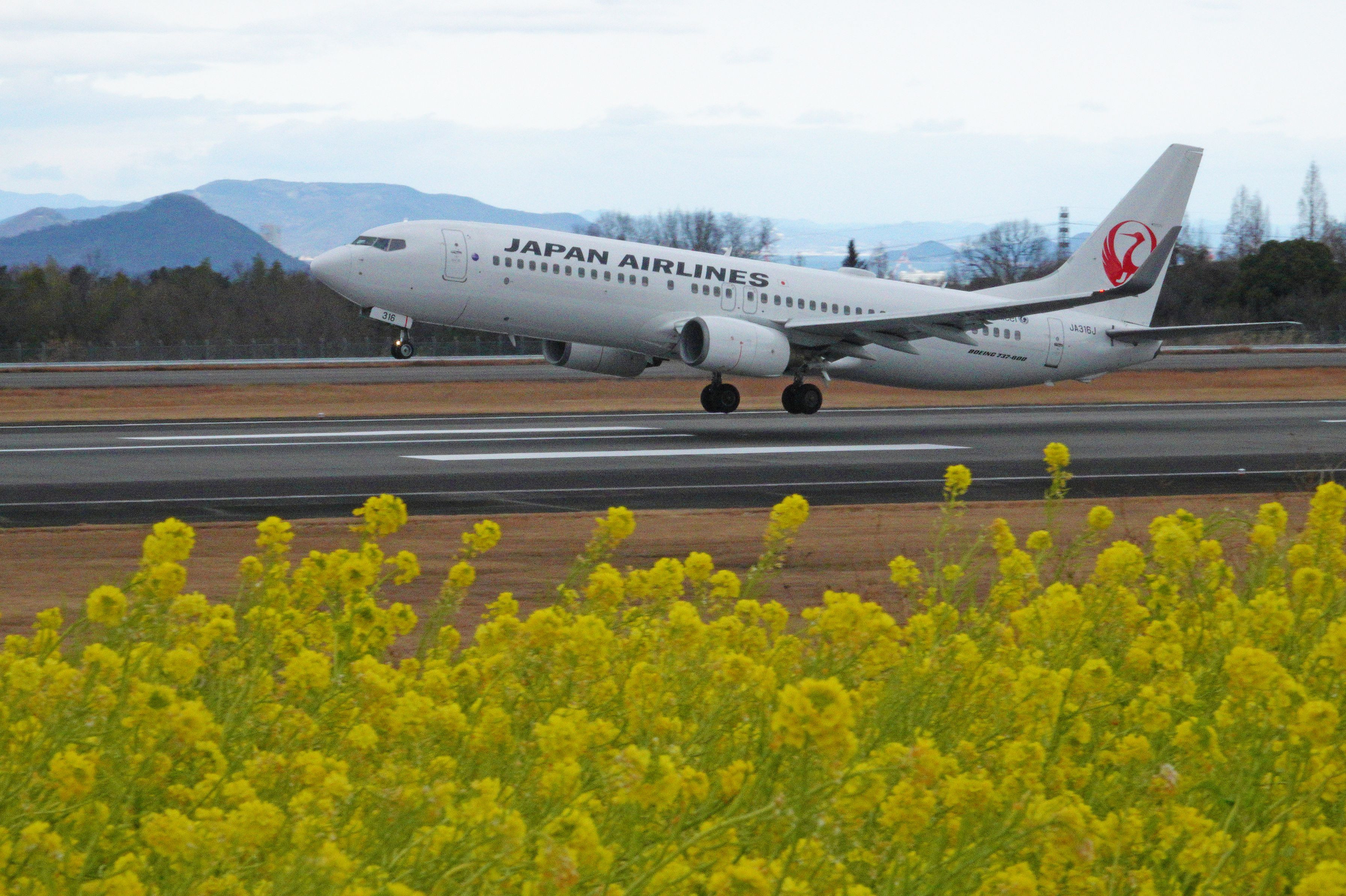 高松空港滑走路に沿って散歩。 JAL、Hkexpress、ANAが次々と飛び立ちました。