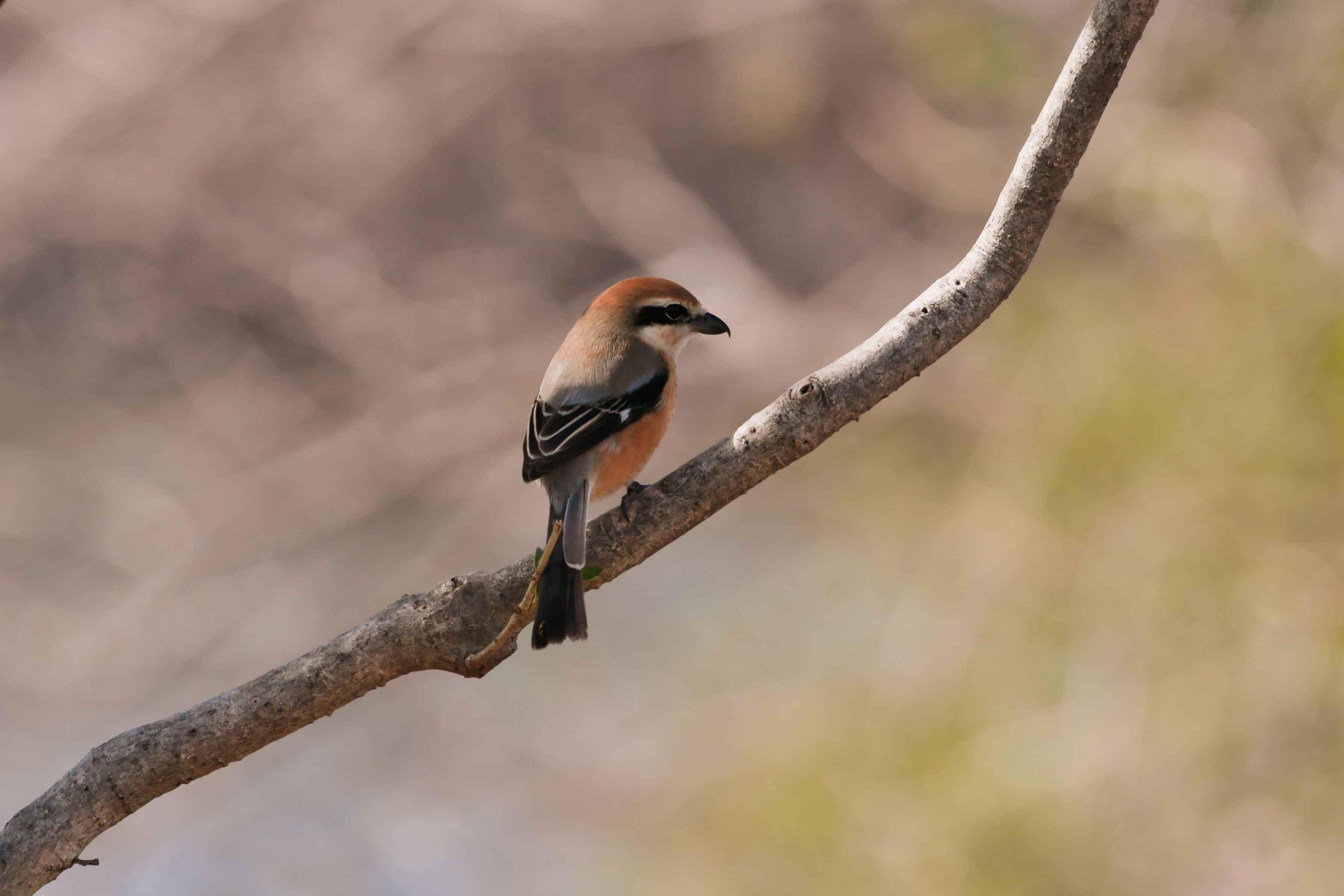 フェンスに留まるモズ
