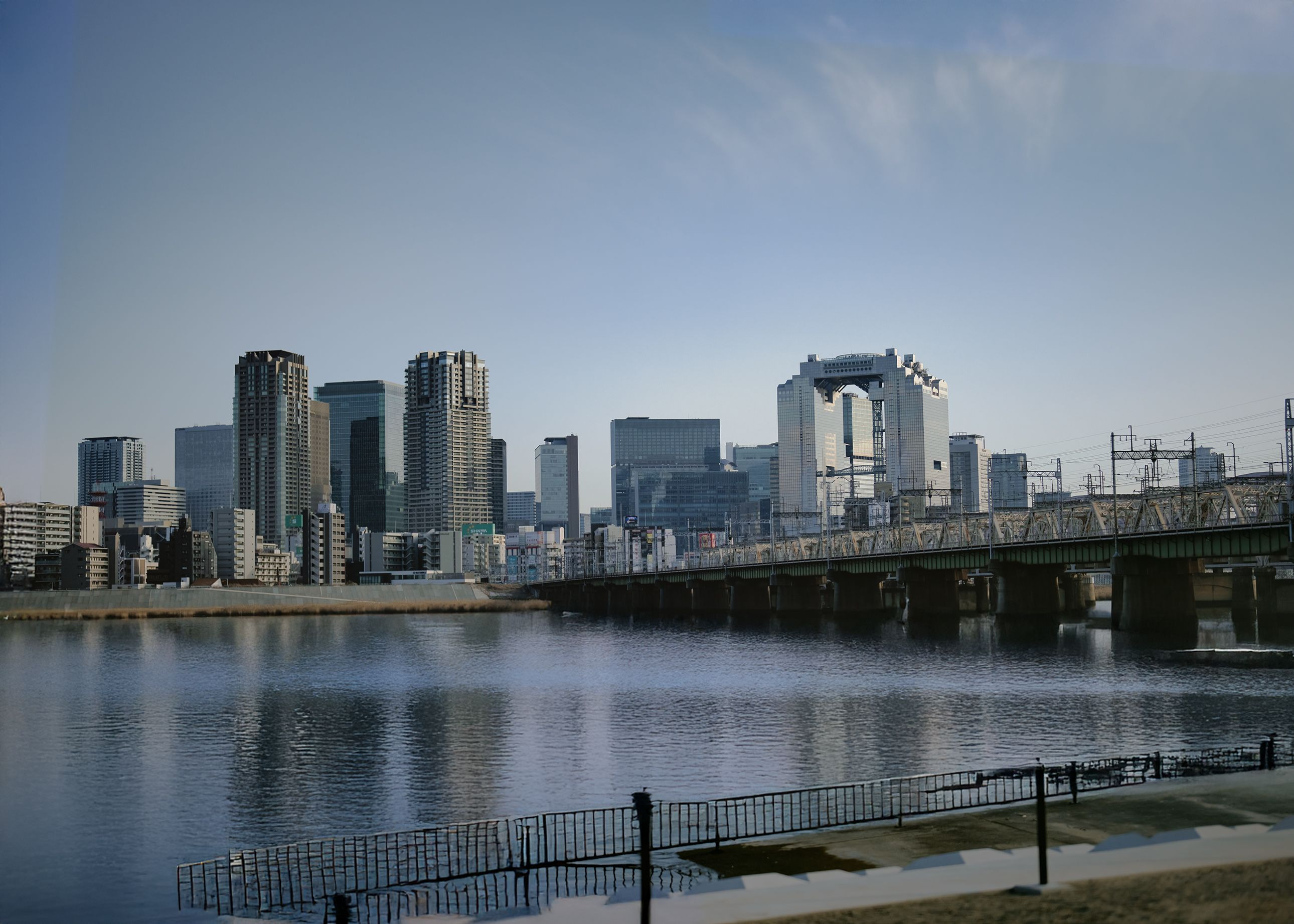 寒い中、淀川べりからスカイビルを長秒でとらえてきました。