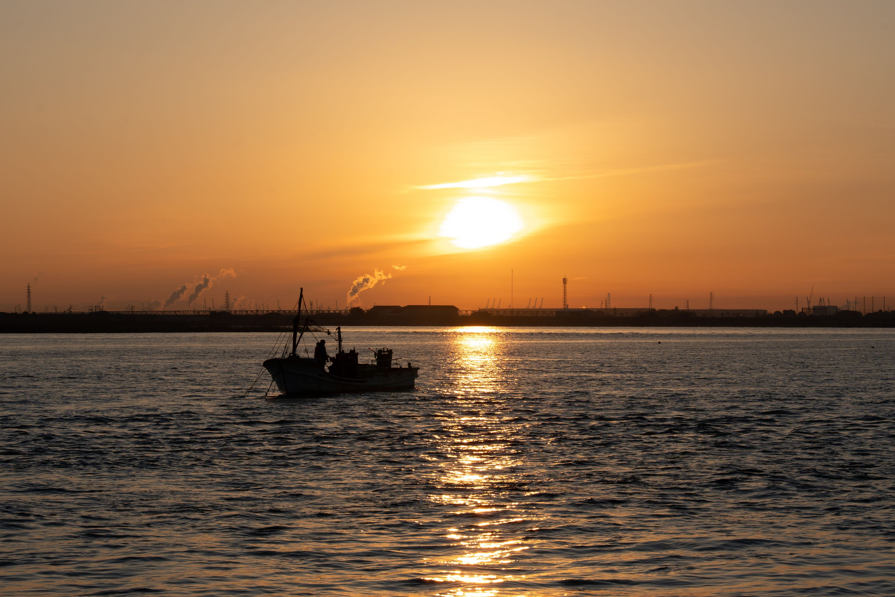 早起きしたかいありました。 訪れたのは三重県桑名市です。 「七里の渡跡(しちりのわたしあと)」というスポットから見られる朝景。 写真に写っているのは、ハマグリやしじみなどの貝を漁する船です。 朝の静寂を絶つ船のけたたましいエンジン音に思わず足を走らせました。 写真を見返した時には「カメラ持っててよかったぁ」と、トキメキましたよ。