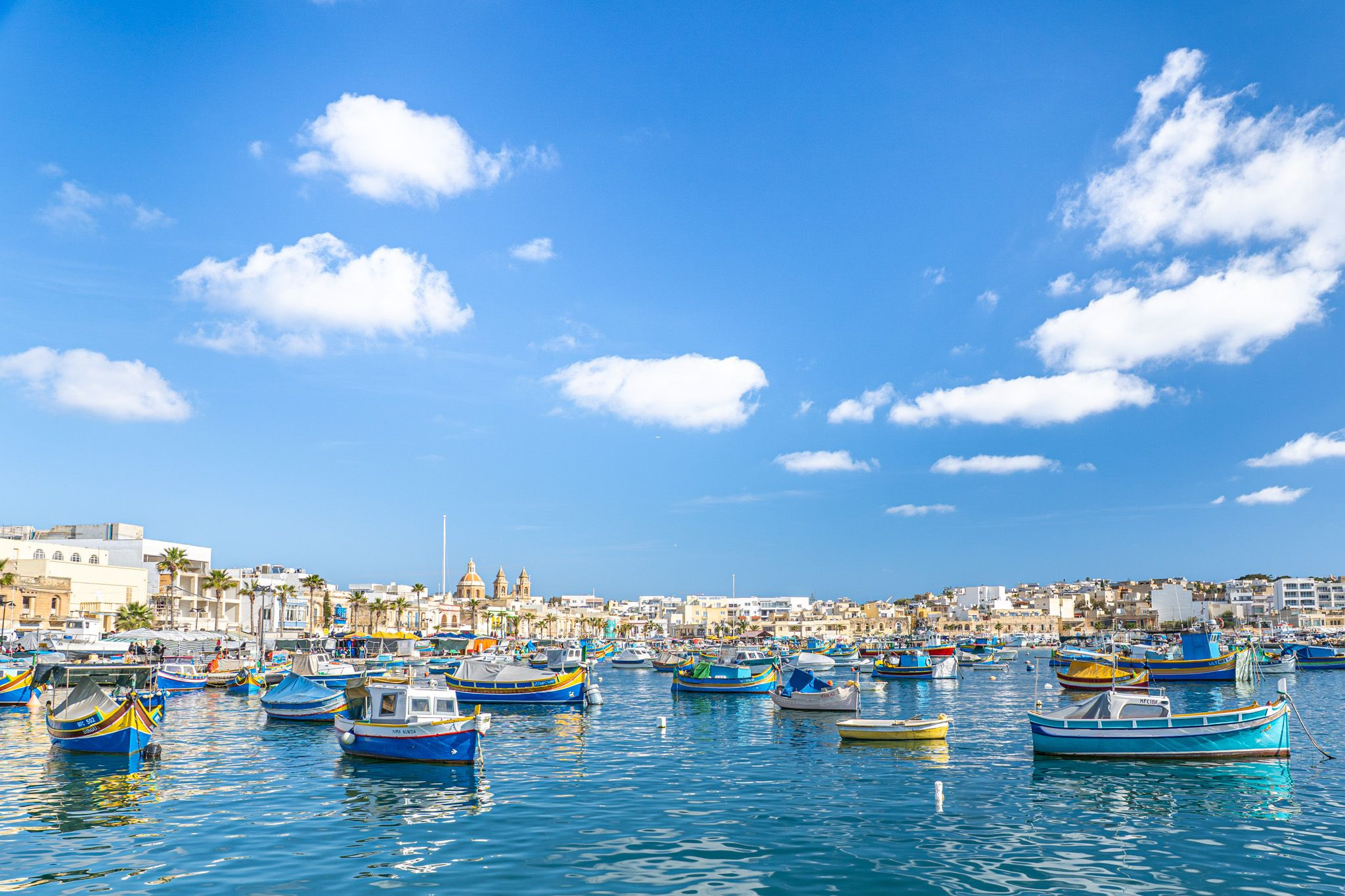 Maltaのマルサシュロックです。カラフルな漁船と教会のコントラストが面白い街でした。